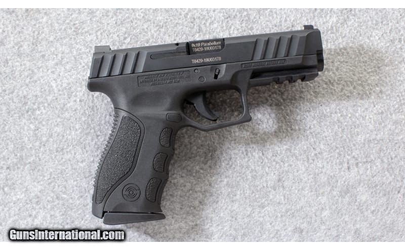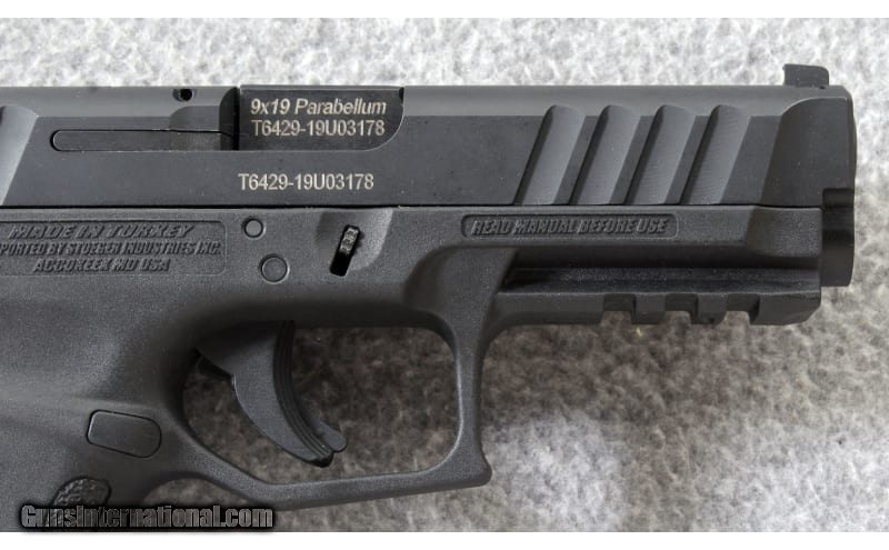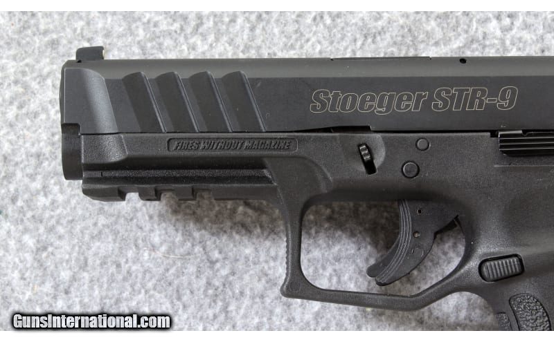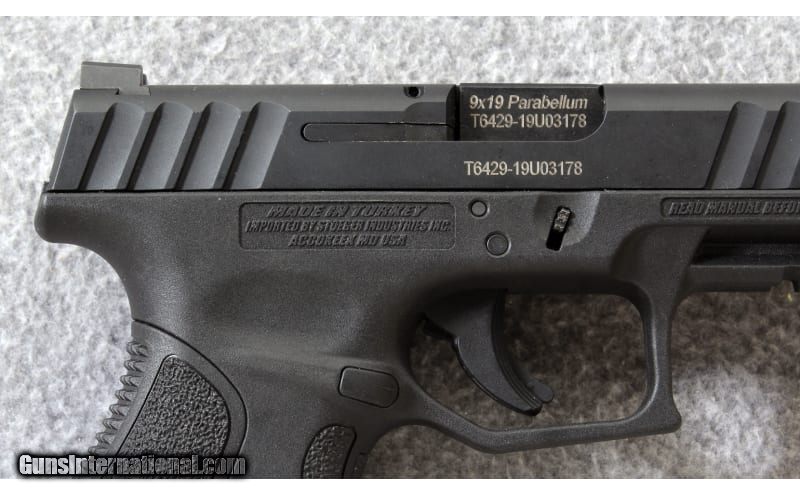 Description: The Stoeger® STR-9 Semi-Auto Pistol utilizes a striker-fired mechanism and outstanding ergonomics to deliver rapid shots with unfailing reliability. The polymer frame features aggressive texturing, thumb groves, and an under-cut trigger guard to provide a non-slip hold and position the shooter's hand close to the bore axis for enhanced control and quick follow-up shots. An integral Picatinny rail provides for attaching aftermarket tactical accessories. The trigger breaks cleanly, and it has a tactile and audible short reset. A safety lever in the center of the trigger prevents the pistol from firing unless the trigger is intentionally pressed in the center and pulled all the way back. The Nitride-finished slide features aggressive front and rear serrations. Dovetailed, drift adjustable 3-dot night sights are quick to acquire in varied light conditions. The Stoeger STR-9 Semi-Auto Pistol field-strips easily. 9mm Parabellum SOLD Metal Condition: Excellent Bore Condition: Excellent Barrels: 4.17 inch barrel Triggers: Striker fire Weight: 26 oz. Sights: Three dot night sights Item Location: Lehi, UT |