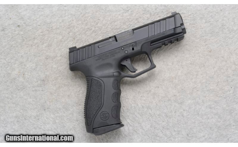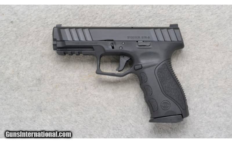 Description: This Stoeger Model STR-9 is a right hand semi-auto pistol in 9mm Cal. It has a 4 inch barrel with a front and rear serrated slide. A blade front sight and notch rear sight, both with white sight dots. The grip is a textured black polymer with molded finger grooves. It has a lower accessory rail. 9mm Parabellum SOLD Chambers: 15 round magazine. Metal Condition: Excellent. Bore Condition: Excellent. Barrels: 4 inch barrel with a front and rear serrated slide. Weight: 28 oz. Sights: Blade front. Notch rear. White sight dots. Item Location: Richfield, WI |
