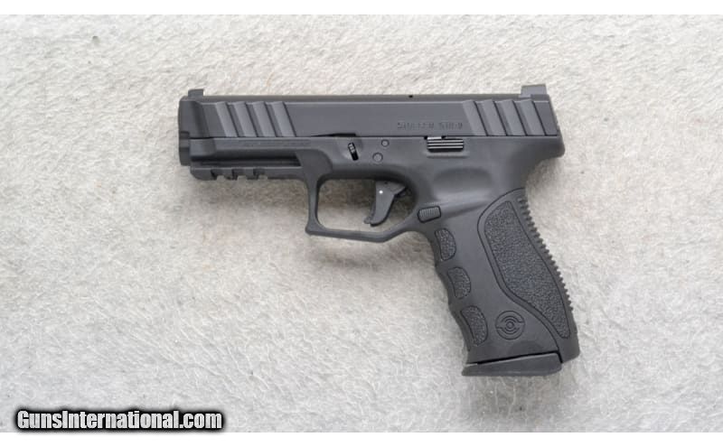 Description: This Stoeger Model STR-9 is a right hand semi-auto pistol in 9mm Cal. It has a 4 inch barrel with a front and rear serrated slide. A blade front sight and notch rear sight, both with white sight dots. The grip is a textured black polymer with molded finger grooves. It has a lower accessory rail. 9mm Parabellum SOLD Chambers: 15 round magazine. Metal Condition: Excellent Bore Condition: Excellent Barrels: 4 inch barrel with a front and rear serrated slide. Weight: 24 oz. Sights: Blade front. Notch rear. White sight dots. Item Location: Richfield, WI |