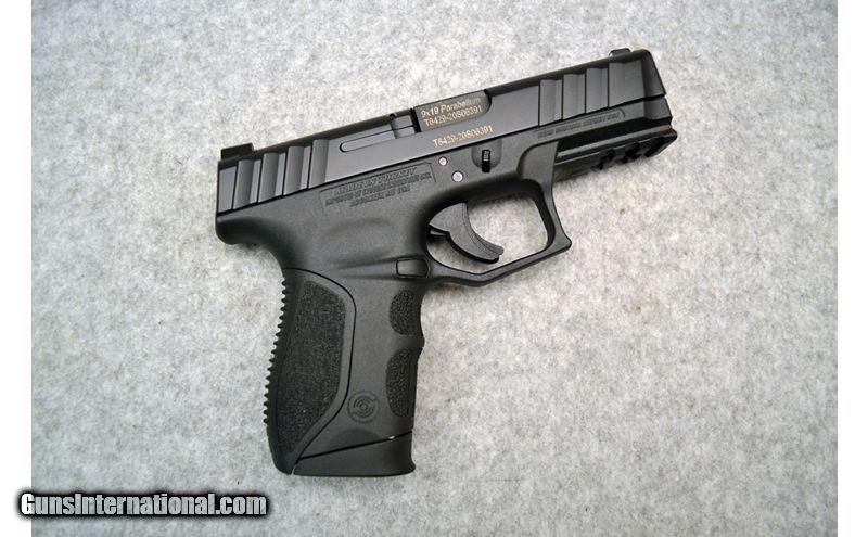 Description: This Stoeger Model STR-9C is a right hand semi-auto pistol in 9mm. It has a 4 inch barrel with a front and rear serrated slide. A blade front sight and notch rear sight. The grip is a textured black polymer. It has a lower accessory rail. Includes a holster and one magazine. 9mm Luger SOLD Barrels: 4 Weight: 26 oz. Item Location: christiana |