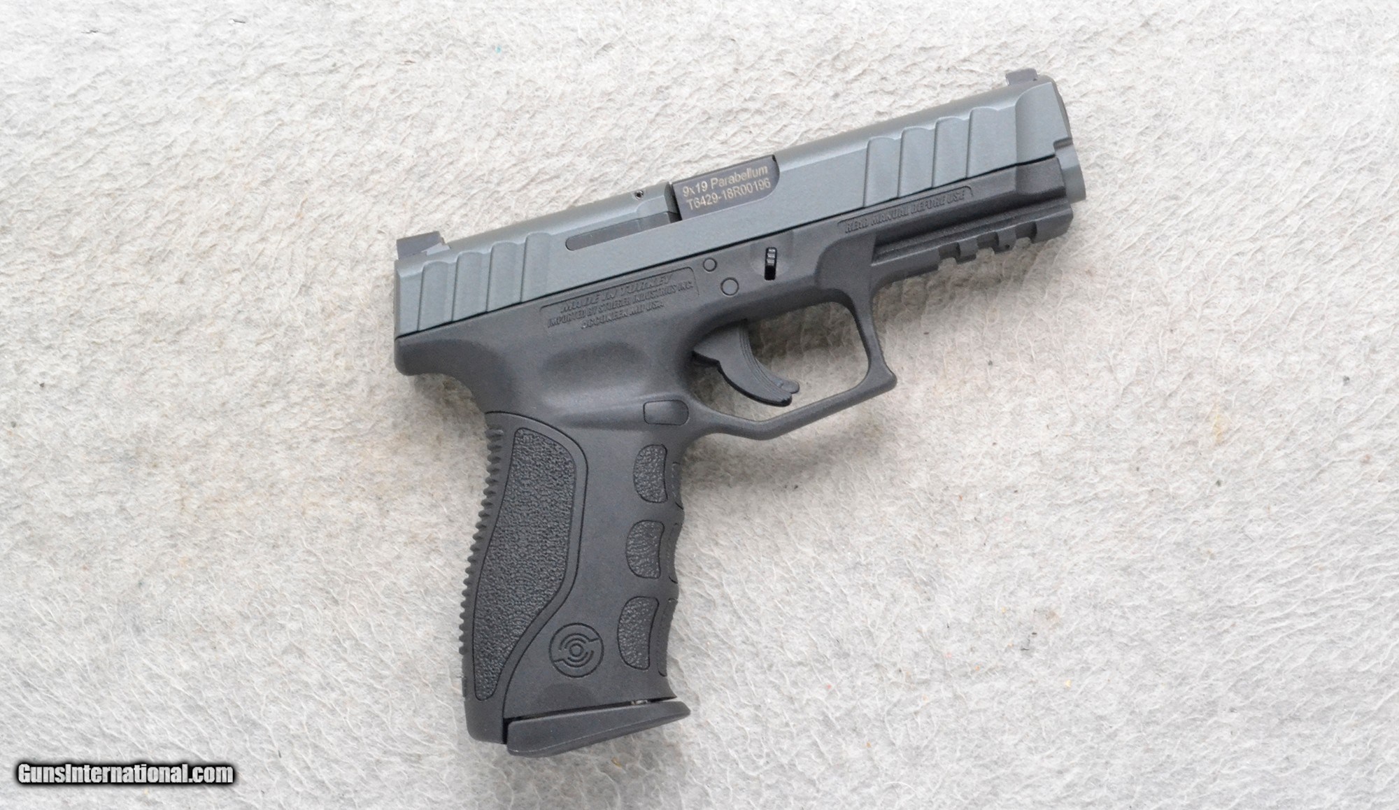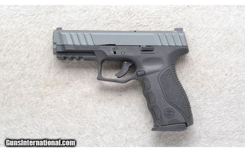 Description: This Stoeger Model STR is a right hand semi-auto pistol in 9mm Cal. It has a 4 inch barrel with a front and rear serrated slide. A blade front sight and notch rear sight, both with white sight dots. The grip is a textured black polymer with molded finger grooves. It has a lower accessory rail. 9mm Parabellum SOLD Chambers: 15 round magazine. Metal Condition: Excellent. Bore Condition: Excellent. Barrels: 4 inch barrel with a front and rear serrated slide. Weight: 26 oz. Sights: Blade front. Notch rear. White sight dots. Item Location: Richfield, WI |