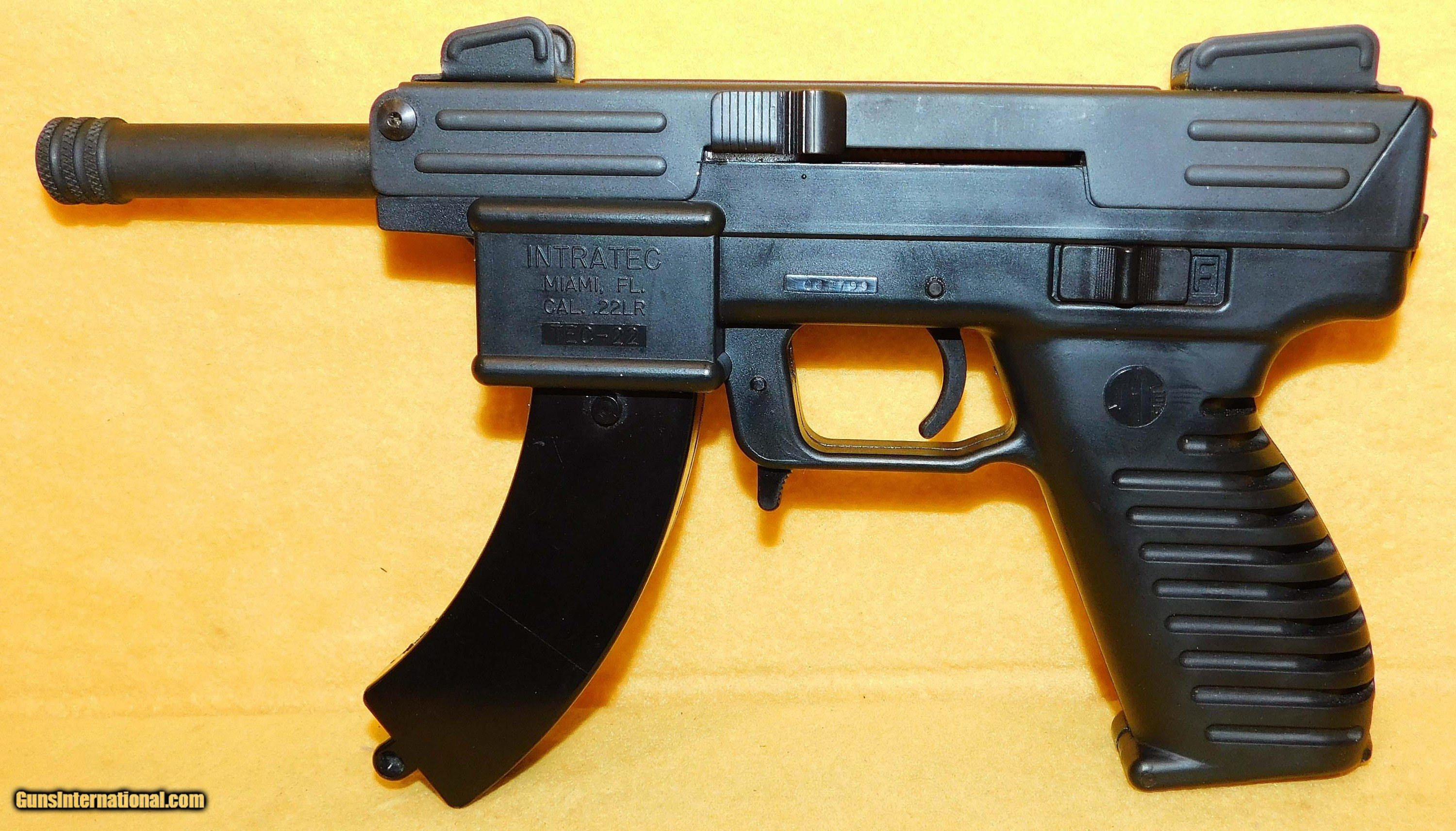 Description: INTRATEC TEC-22 IN .22 L.R. CAL., WITH 4" BARREL. COLOR MATTE. CONDITION 97%. SERIAL NUMBER 082799. INTRATEC MODEL TEC-22 IN .22 CALIBER, BRIGHT SHINY BORE, GRIPS EXCELLENT, THREADED BARREL WITH THREAD PROTECTOR, COMES WITH ONE INTRATEC FACTORY MAGAZINE, 97% OVERALL CONDITION, OUR STOCK # D4020 SOLD |