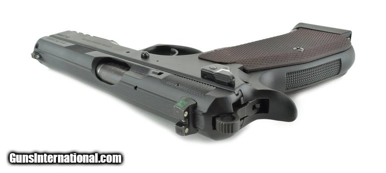 Description: Czech 75 SP-01 Tactical 9mm caliber pistol. Tactical model with decocker, thin G10 grips and night sights. Excellent condition with box and extra magazine.