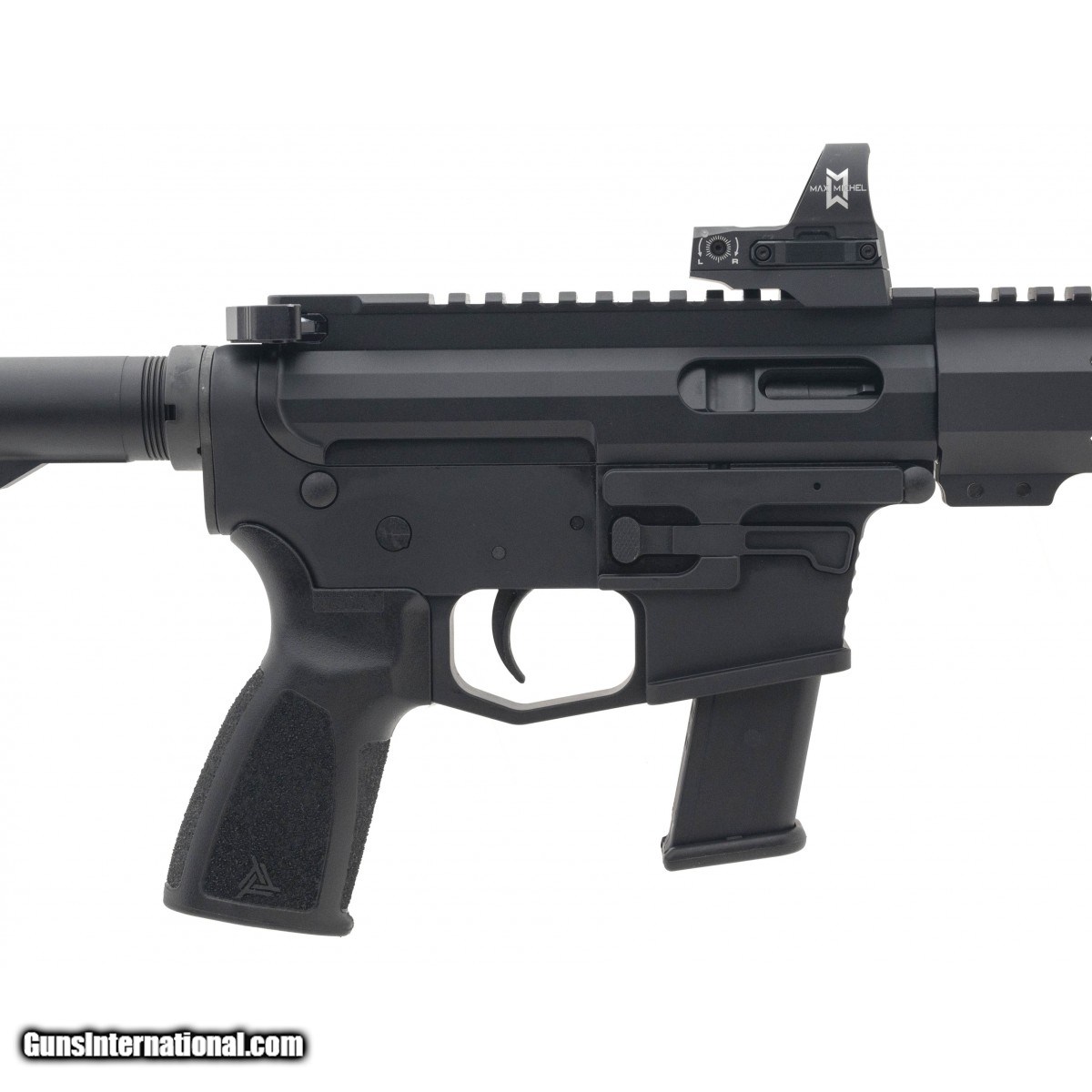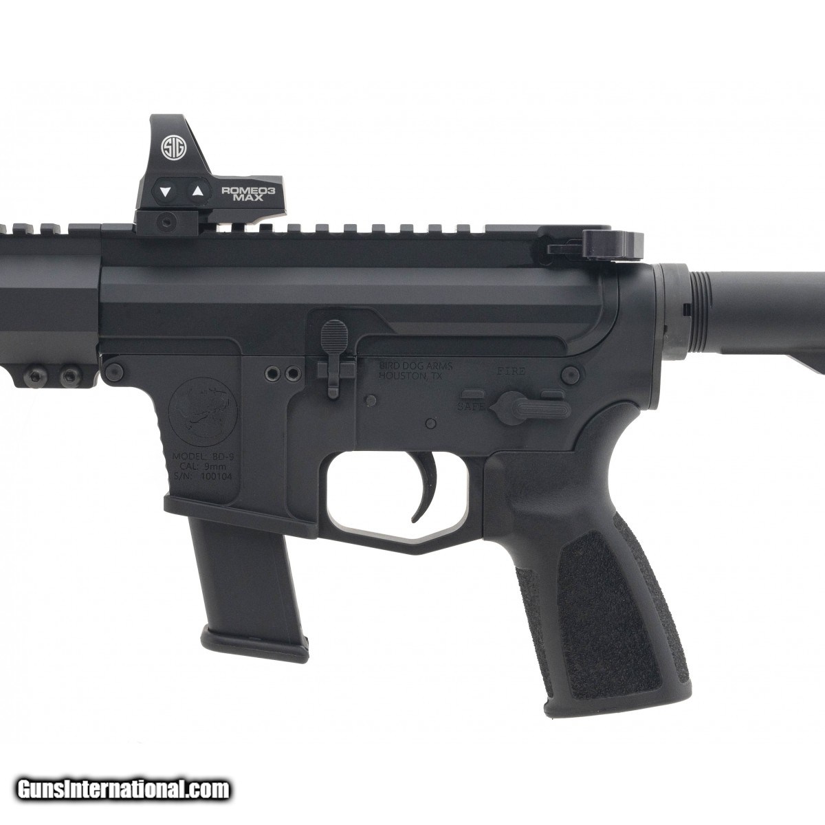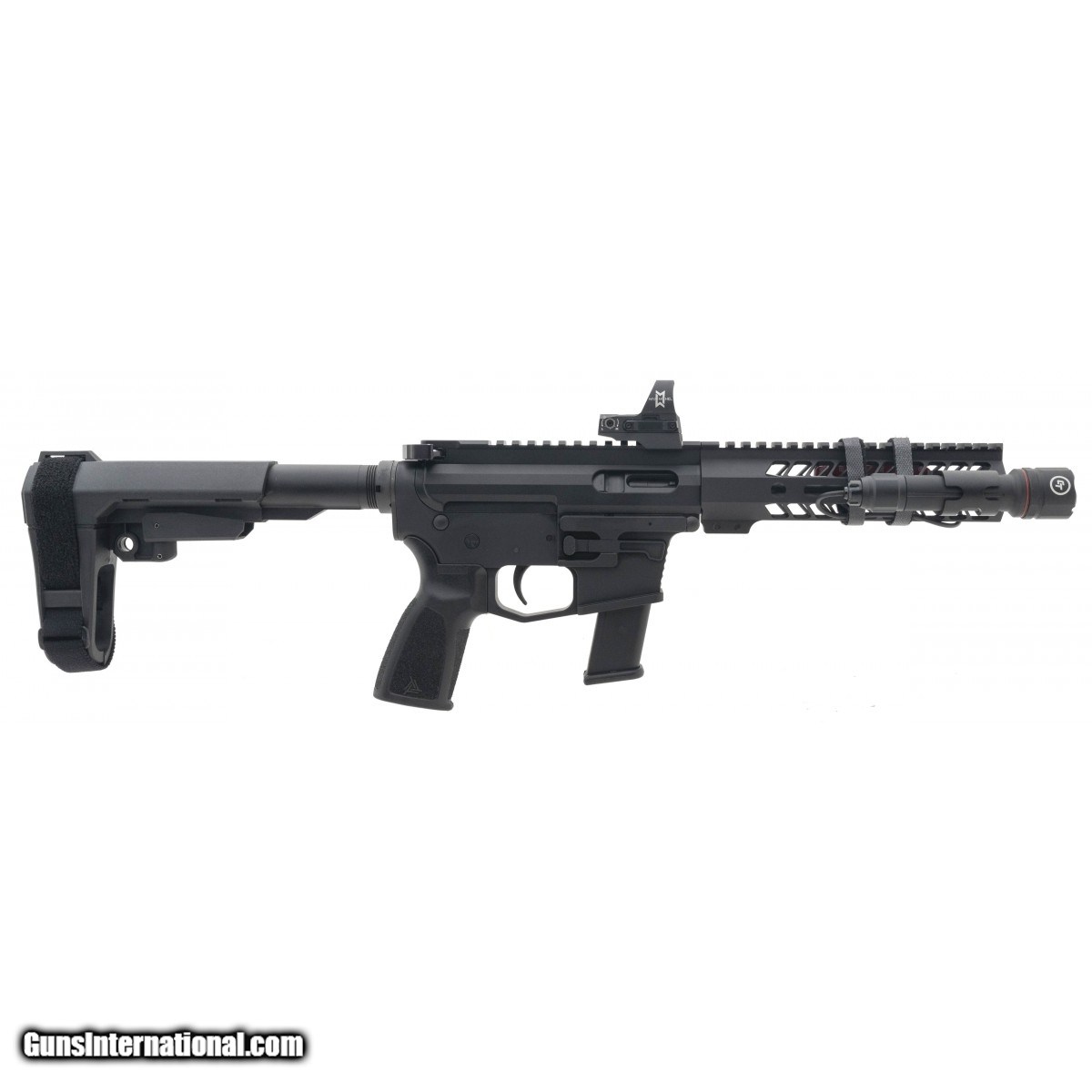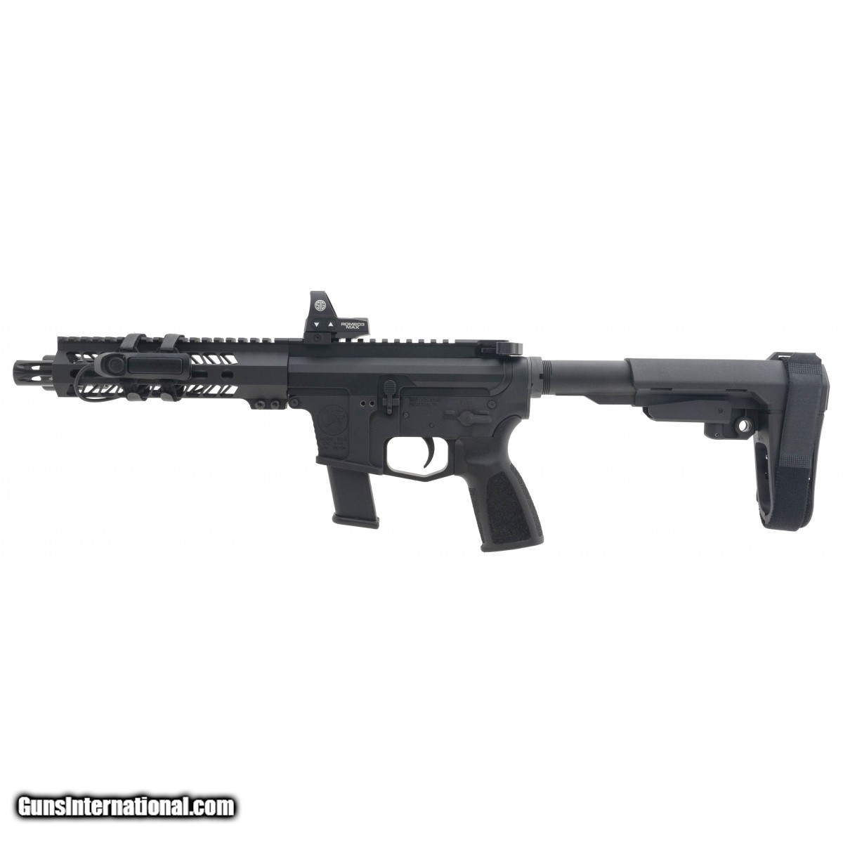 Special ""Guard Dog"" edition! Houston-made tactical pistol with 8"" barrel, 7.5"" free-floating M-Lok rail and SB tactical brace. Accepts Glock Pattern magazines. Comes with Sig Sauer Romeo 3 Max and Crimson Trace Tactical light. NEW.
