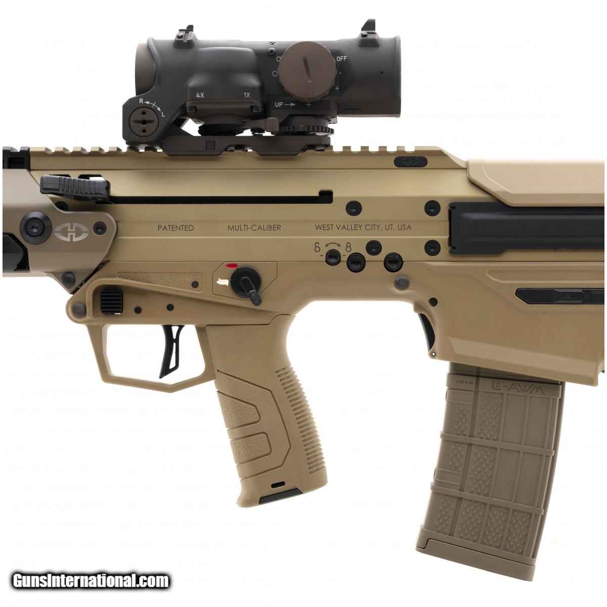 Description: " SN:MDR006214. 16"" bullpup rifle with integrated bipod and a 50 shades of FDE Finish. In excellent condition. Includes a range backpack and an ELCAN Specter 1x - 4x optic. SOLD |