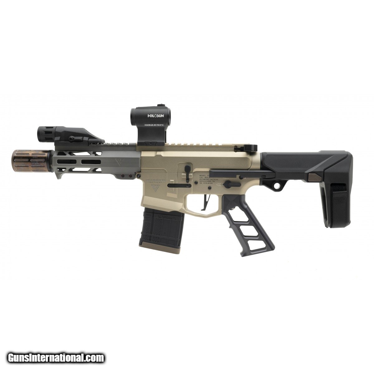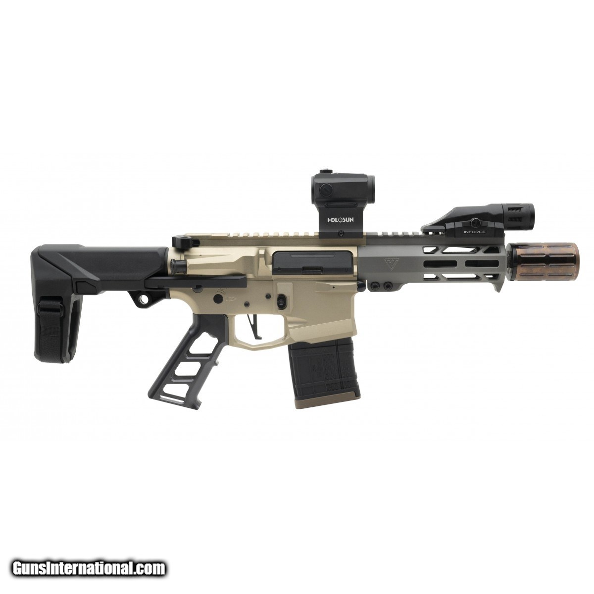 Tactical pistol with 7.5"" barrel and clear anodized billet receiver. Has Fail zero bolt, CMC flat trigger, light weight grip, SB Tactical HBPDW brace, Holosun HE403B green optic, Inforce WML and titanium muzzle device and RT blast Diverter. Comes with range bag. NEW.
