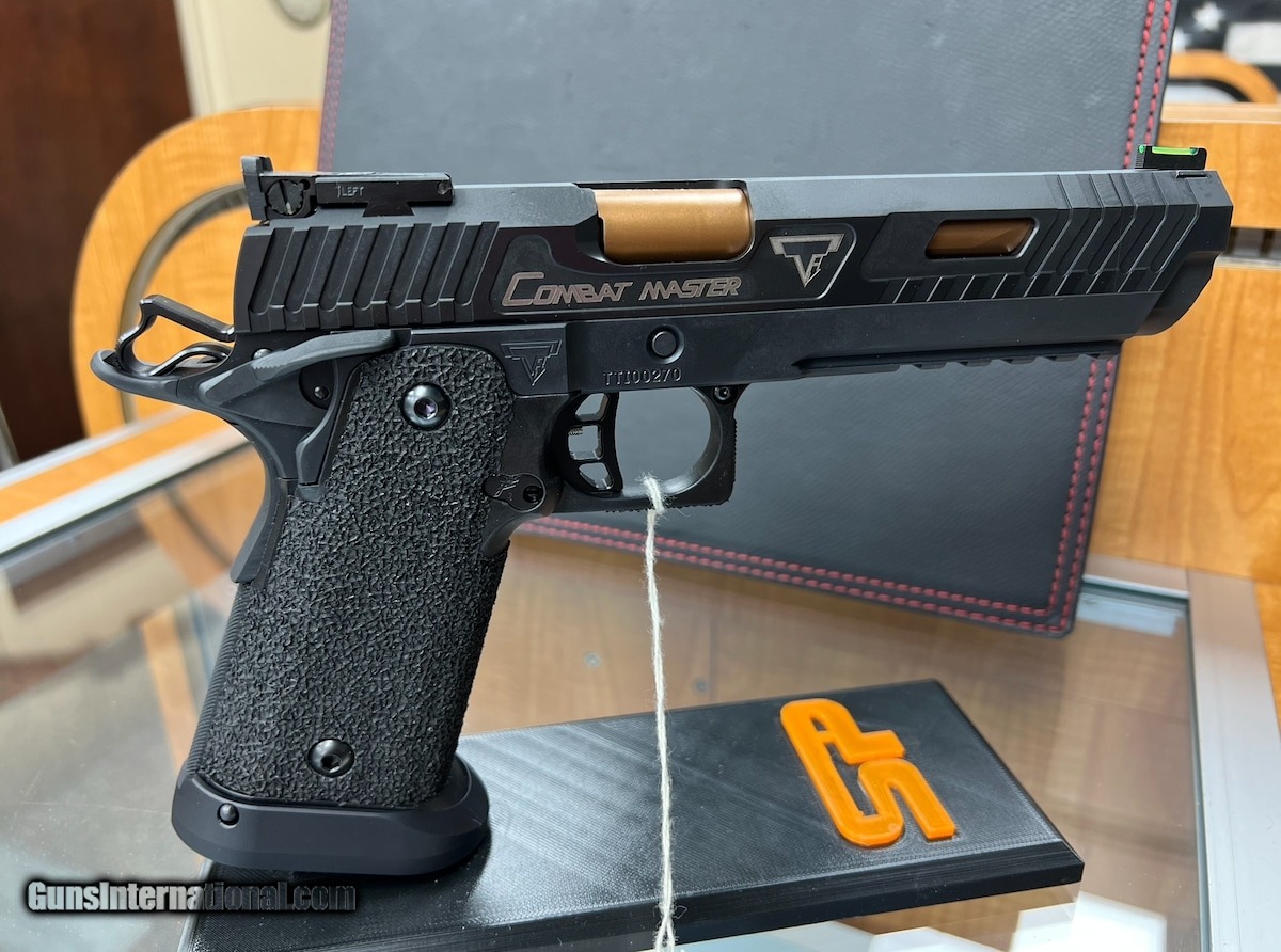 Description: Guns Listing ID: 450305 ***** BRAND NEW RARE ***** TTI JW3 Combat Master Sight Block Details -5.4 Inch Match Grade Sight Block Barrel -FDE/Bronze DLC coated Barrel -Black DLC coated Slide and Frame -Combat Master Slide Cuts -Aftec Extractor -Extreme Engineering Fire Control Group (Hammer & Sear) -TTI Fiber optic front sight and Ken Sight adjustable rear sight -New Extended Slide Release -New extended Mag release -1.75-2.5 LBS trigger pull -Stainless Steel Guide Rod -TTI Grip job -Includes four 21 round magazines. SOLD Manufacturer: 0 Model: TARAN TACTICAL JW3 COMBAT MASTER SIGHT BLOCK Caliber Info: 9 MM LUGER Condition: Used - Non-Certified Barrels: 5.4 BARREL |