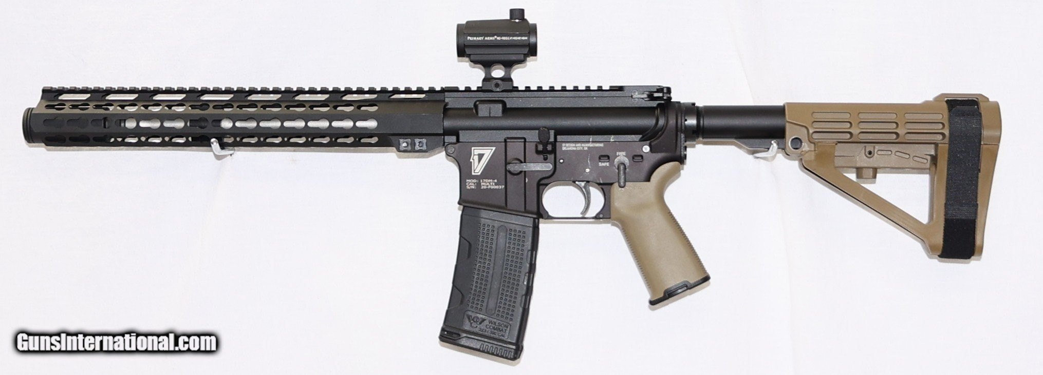Description: Guns Listing ID: 576389 Pre-owned AR style pistol chambered in .300 HAM‚R. This is a \"BUILD\". Overall condition is very good, however there are a few scratches on the receiver. Parts: 17 Design & Manufacturing 17DM-4 lower Wilson Combat 11.3\" stainless barrel SB Tactical Brace MagPul pistol grip Aero Precision M-Lok handguard Primary Arms MD-RBG II red dot They say a picture is worth a thousand words. These photos are the best statement of condition; please review them carefully before purchasing. Manufacturer: 17 DESIGN AND MANUFACTURING Model: 17DM-4 build Wilson Combat barrel Caliber Info: .300 HAM‚R Condition: Used - Non-Certified Barrels: 11.25" BARREL Action: SEMI AUTOMATIC Finish: black/fde Price: $999.99 Contact Seller |