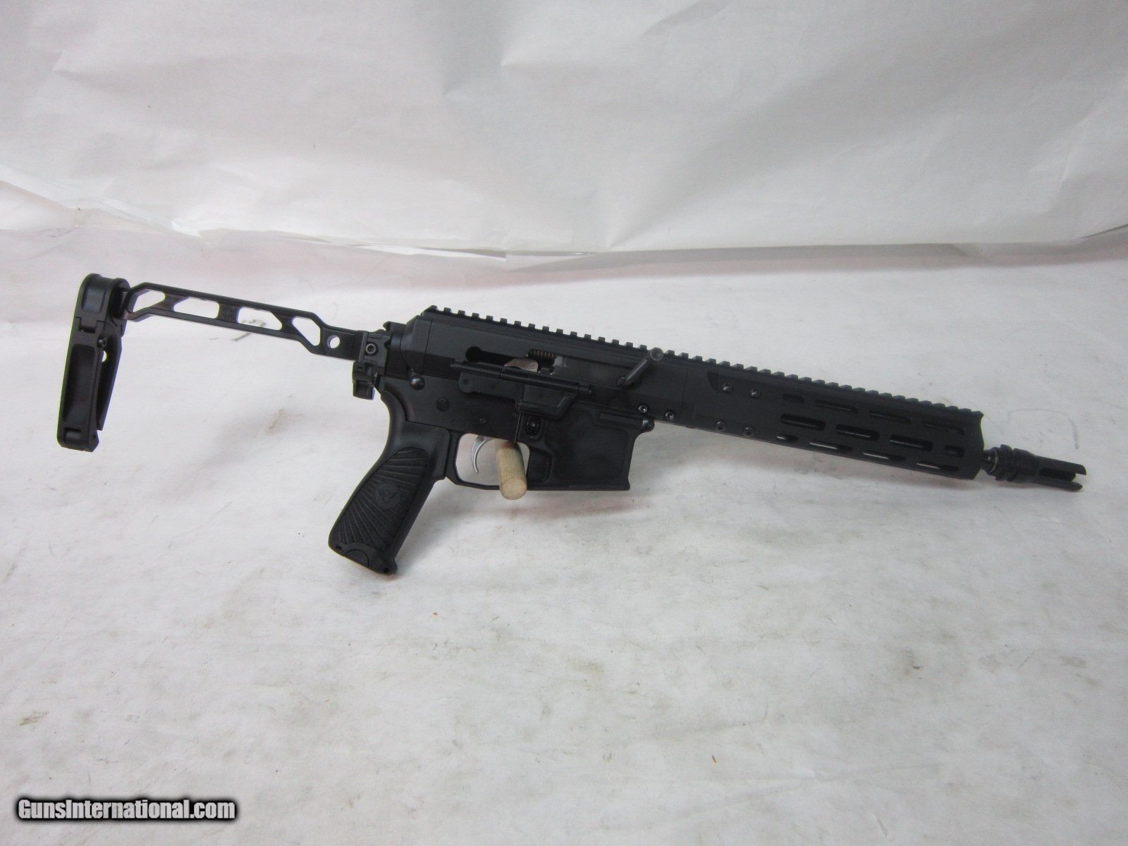 Description: Guns Listing ID: 497397 MAKE: 17 Design MODEL: 17DM-180 ACTION: Semi CALIBER: 5.56 NATO FINISH: Black TYPE OF STOCK: Folding arm brace, alloy arm, polymer arm clamp CONDITION: Very good BARREL LENGTH: 10\" OVERALL LENGTH: 29\" and 21\" PULL LENGHT: 11 1/2 \" SCOPE: N/A SIGHTS: N/A NUMBER OF MAGS: N/A CAPACITY: N/A CHOKE TYPE: N/A CASE: N/A ACCESSORIES: N/A SERIAL #: 21-BRN00230 ADDITIONAL DESC: A very good condition, very clean home protection and plinking pistol. The 10 inch barrel steps down to a fairly light contour under the forend and has a very good condition bore, chamber and muzzle crown. The barrel‚‚s actual round count is unknown. The pistol was made as a gas piston firearm, by 17 Design and marketed by Brownell‚‚s. Sorry, but we do not have the factory box, owner‚‚s manual, magazine, sights, optic, sling, ammunition, reloading dies, spent brass, or any other tools or accessories for the rifle. While the pistol has been cleaned, lubed and inspected by our gunsmith , it has not been test fire SOLD Manufacturer: 17 DESIGN AND MANUFACTURING Model: BRM-180 Caliber Info: 5.56X45MM NATO Condition: Used - Non-Certified Barrels: 10 BARREL Action: SEMI AUTOMATIC Finish: black |