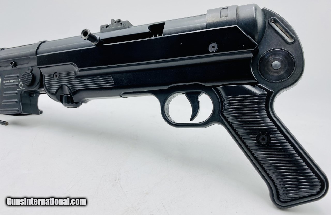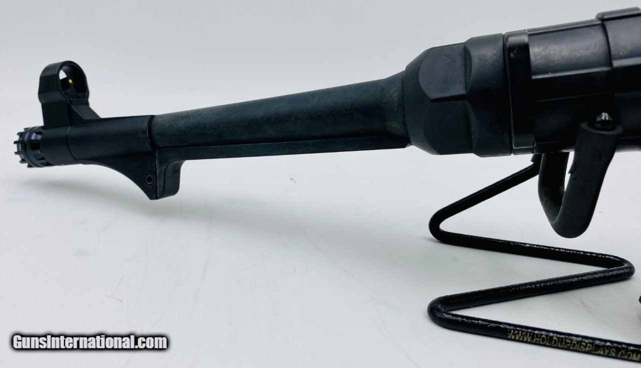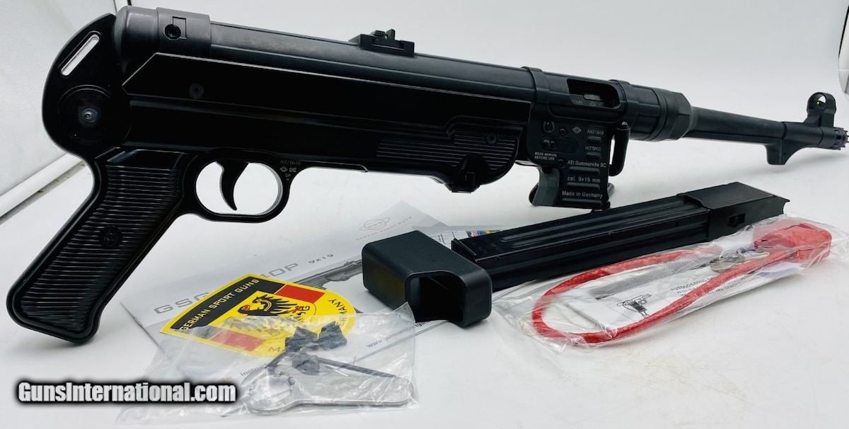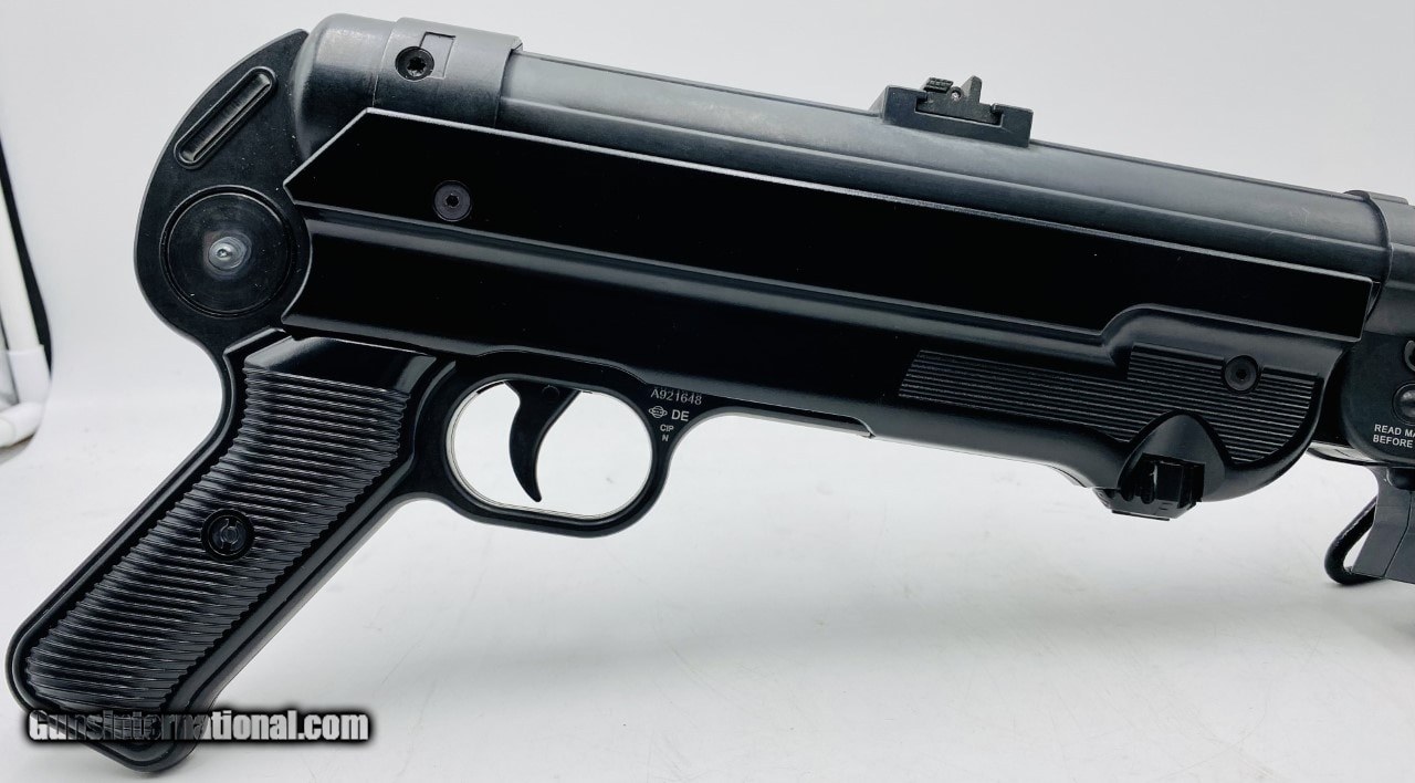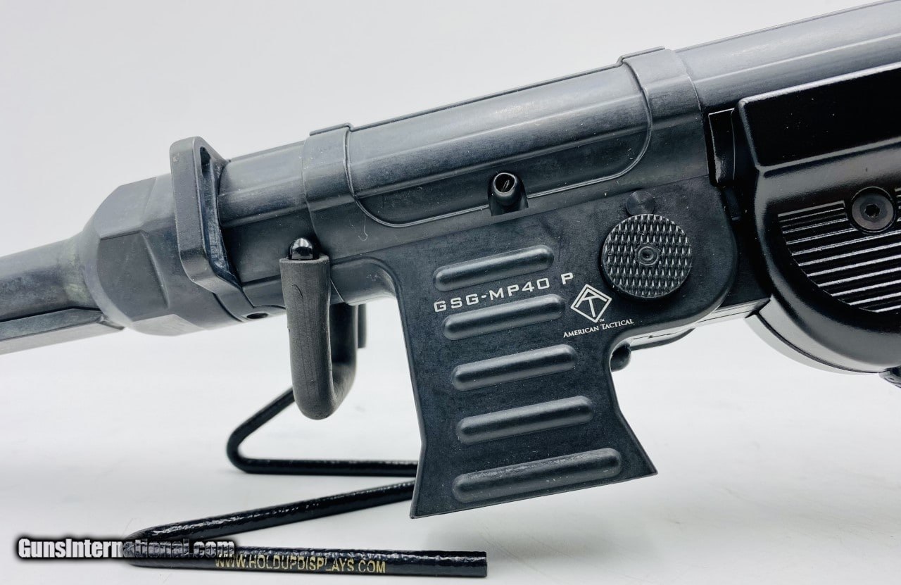 Description: Guns Listing ID: 632457 The German Sport Guns GSG-MP40P 9mm Pistol! American Tactical & GSG are excited to bring to the United States the very first reproduction of the original WWII MP-40 in 9mm. Manufactured as a pistol with no stock, this replica classic firearm is the closest version of an MP-40 to be importable in decades! While maintaining a close overall appearance to the original WWII firearm, the GSG-MP40P is manufactured with all new parts to US regulation specs for importation. Use only commercial grade ammunition in its original packaging that corresponds with the caliber of the gun. The correct caliber is imprinted on the gun. American Tactical has tested this Pistol with 115 & 147 grain factory new ammunition and 135 grain hollow point. Never use reloaded, “refurbished”, hand-loaded or non standard ammunition of a different caliber. Never use dirty, wet, corroded, bent, damaged or oiled ammunition. Unfortunately, it is not possible to adjust a semi-automatic gun to all loads. SOLD Manufacturer: AMERICAN TACTICAL IMPORTS Model: MP40P Caliber Info: 9MM LUGER (9X19 PARA) Condition: Used - Non-Certified Barrels: 10.8" barrel |