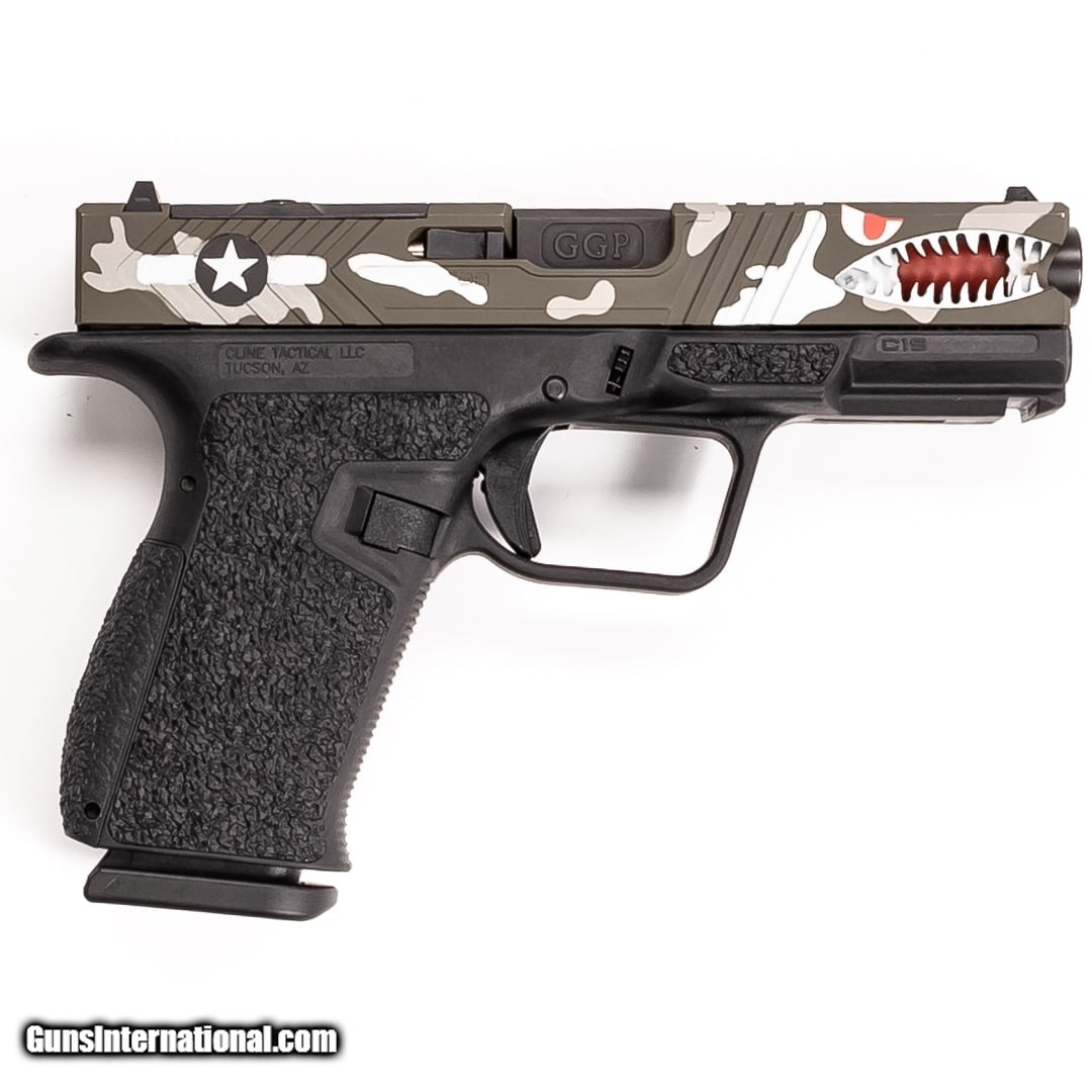 Description: Guns Listing ID: 295110 A customized Glock 19, this Cline Tactical C-19 Warbird offers all of the beloved features of the G19 coupled with a Cline Tactical frame and a custom Cerakote "Warbird" slide. This pistol is in excellent condition! Purchase includes the original case, two 15-round magazines, and backstraps. SOLD Manufacturer: CLINE TACTICAL Model: C19 "WARBIRD Caliber Info: 9MM LUGER (9X19 PARA) Condition: Used - Certified Barrels: 4 BARREL Finish: CERAKOTE |