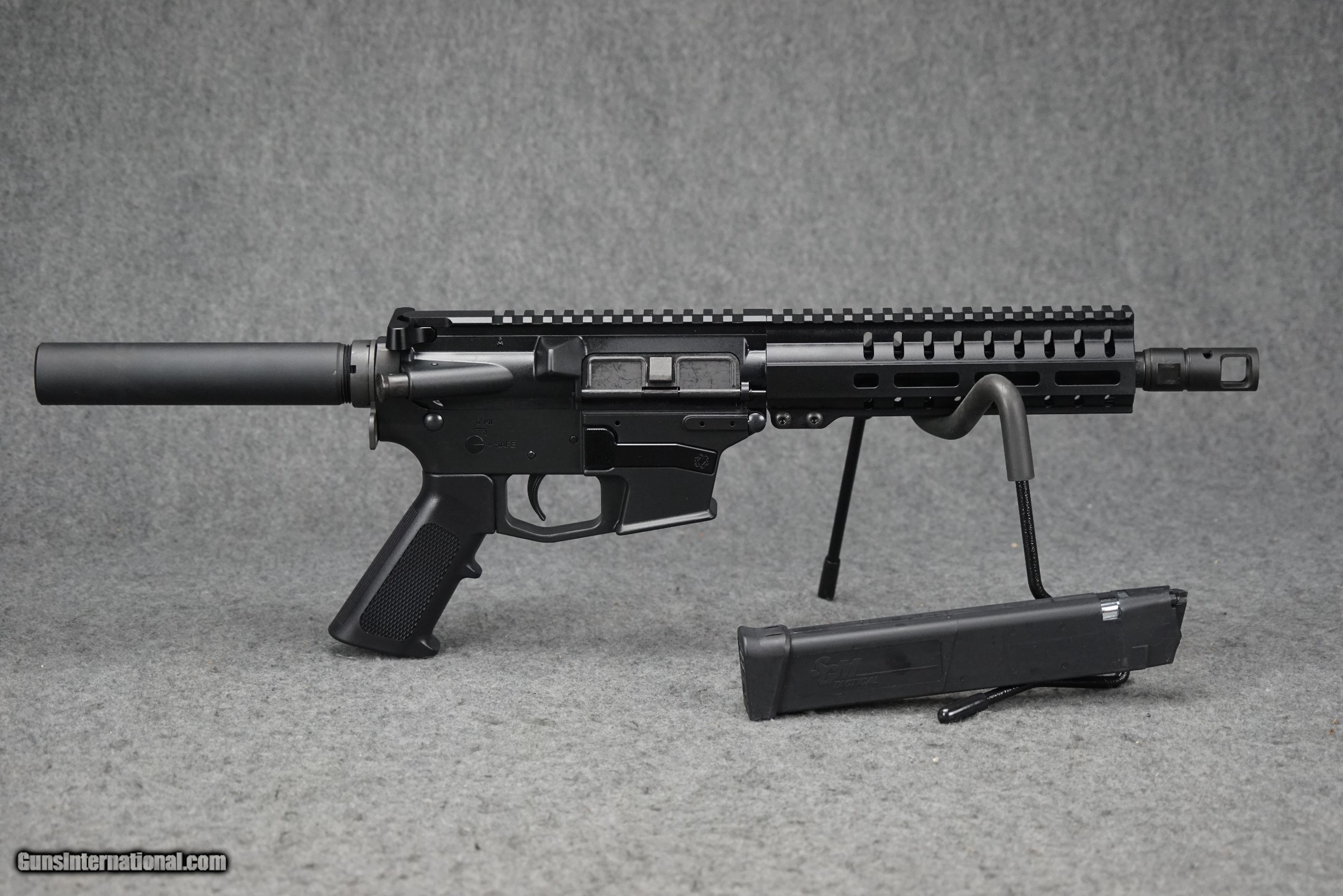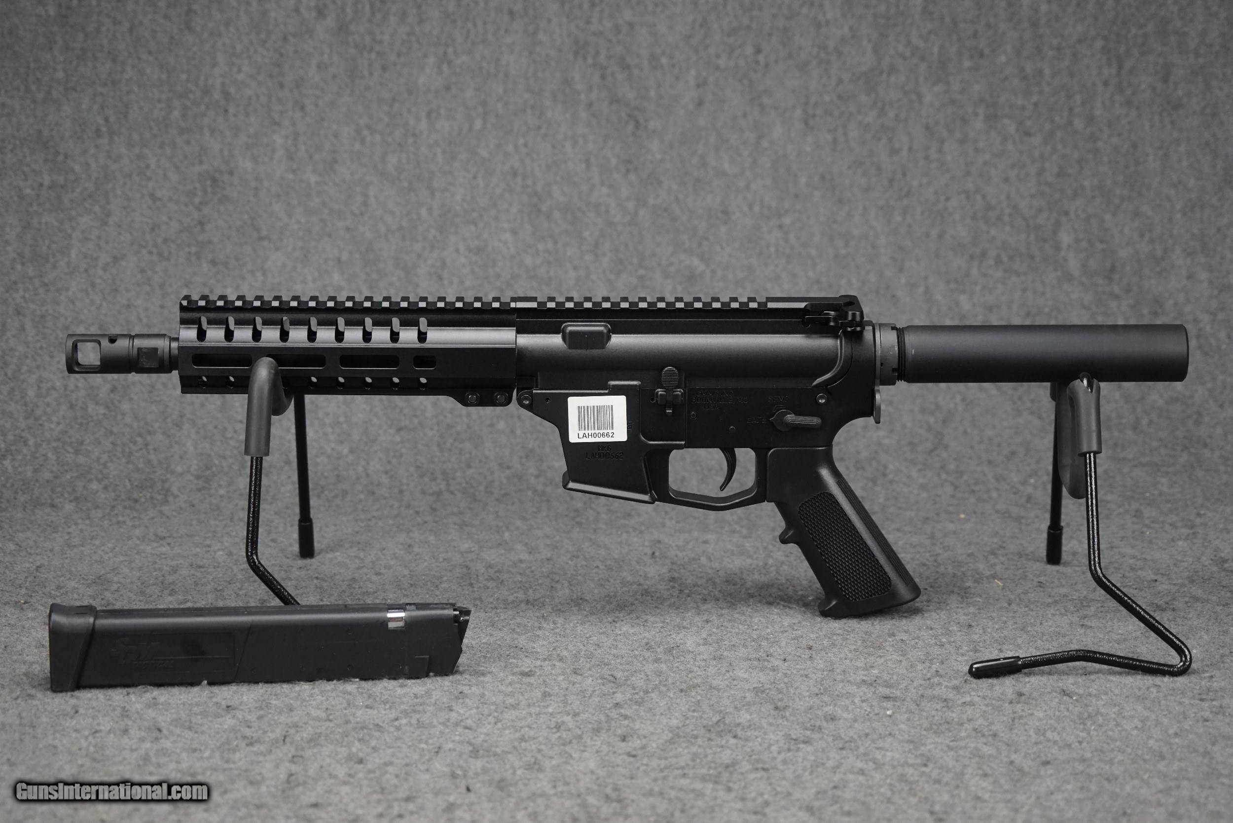 Description: The Banshee 100 is the lightest and most compact AR pistol firearm. It features 7075-T6 aluminum receivers, single-stage trigger, standard safety selector, and a Mil-Spec charging handle. The barrel has a nitride finish and A2 compensator. The Banshee 100 also has a M-Lok free-float handguard and hardcoat anodized finish. This MKG model features an 8" medium taper barrel, A2 grip, CMMG pistol tube, integrated trigger guard, and a 26-round SGM Glock style magazine. SOLD Handgun Caliber: .45 ACP (.45 Auto) Manufacturer: CMMG Model: Banshee 100 MKG Barrel Length: 8" Barrel Condition: BRAND NEW |