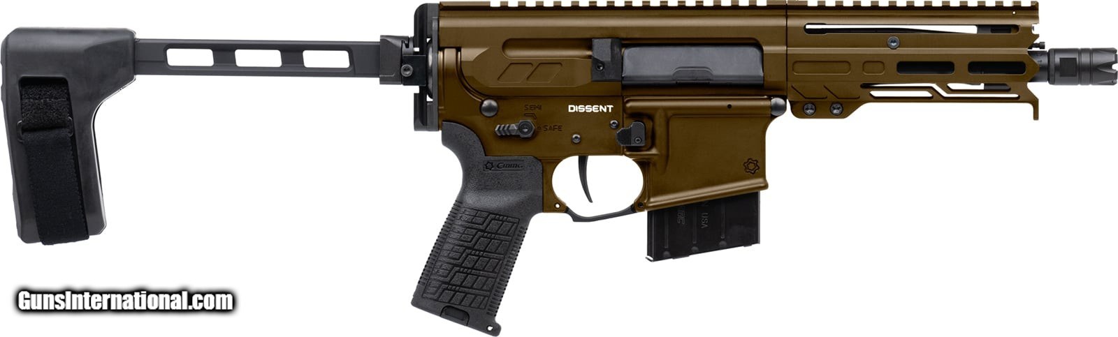 Description: Guns Listing ID: 479328 The Dissent Mk4 features bufferless receiver designed for use with folding stocks and braces along with intermediate cartridges like the popular 5.56x45mm NATO. The Dissent utilizes CMMG‚s patented Compact Action system, allowing for reliable direct impingement operation without the need for a buffer tube assembly. The Dissent also sports side charging handle forward of the action, allowing for easier manipulation of the charging handle to chamber rounds or clear malfunctions. The charging handle is non-reciprocating to allow for use with modern shooting stances and is easily reversible to accommodate left-handed users. New for 2025, CMMG is happy to introduce their tried and true platform in Hornady‚s new .338 ARC cartridge. Made to combine the prowess of the AR15 platform with the stopping power of a large bore caliber, .338 ArC strives to emulate the sub or supersonic versatility of the now ubiquitous .300 BLK cartridge with more energy on target and less gas system tuning when switching from suppressed to unsuppressed. This model comes with a Z-series linear compensator and CMMG‚s proprietary MLOK handguard. This model comes in a pistol configuration and features a 6.5-inch barrel and an FS1913 folding brace along with an Midnight Bronze Cerakote finish. One 10-round magazine is included. Manufacturer: CMMG Model: DISSENT MK4 Caliber Info: .338 ARC Condition: new Barrels: 6.5" BARREL Action: DIRECT IMPINGEMENT Finish: cerakote Weight: 5.5 LBS Price: $1,999.99 Contact Seller |