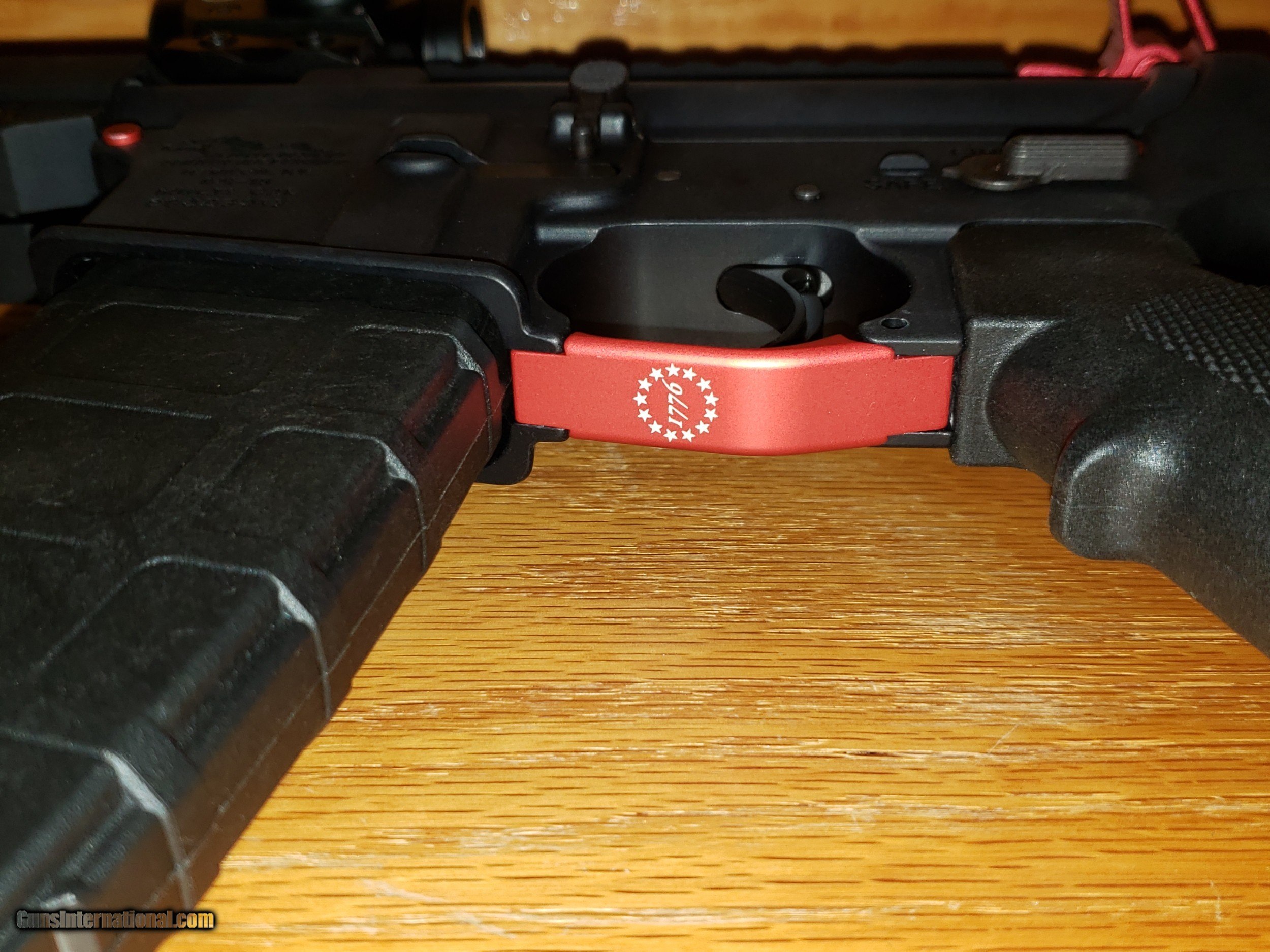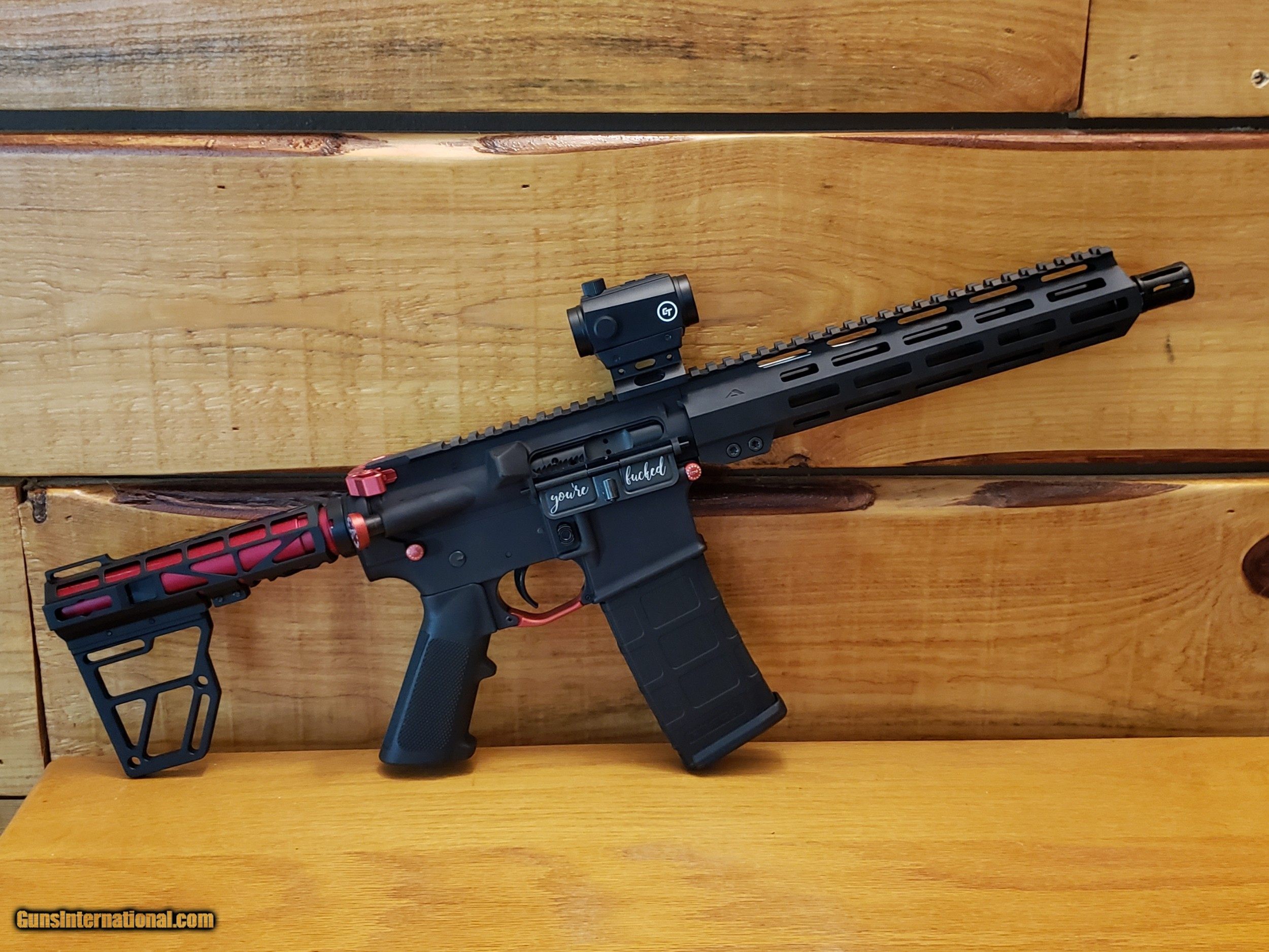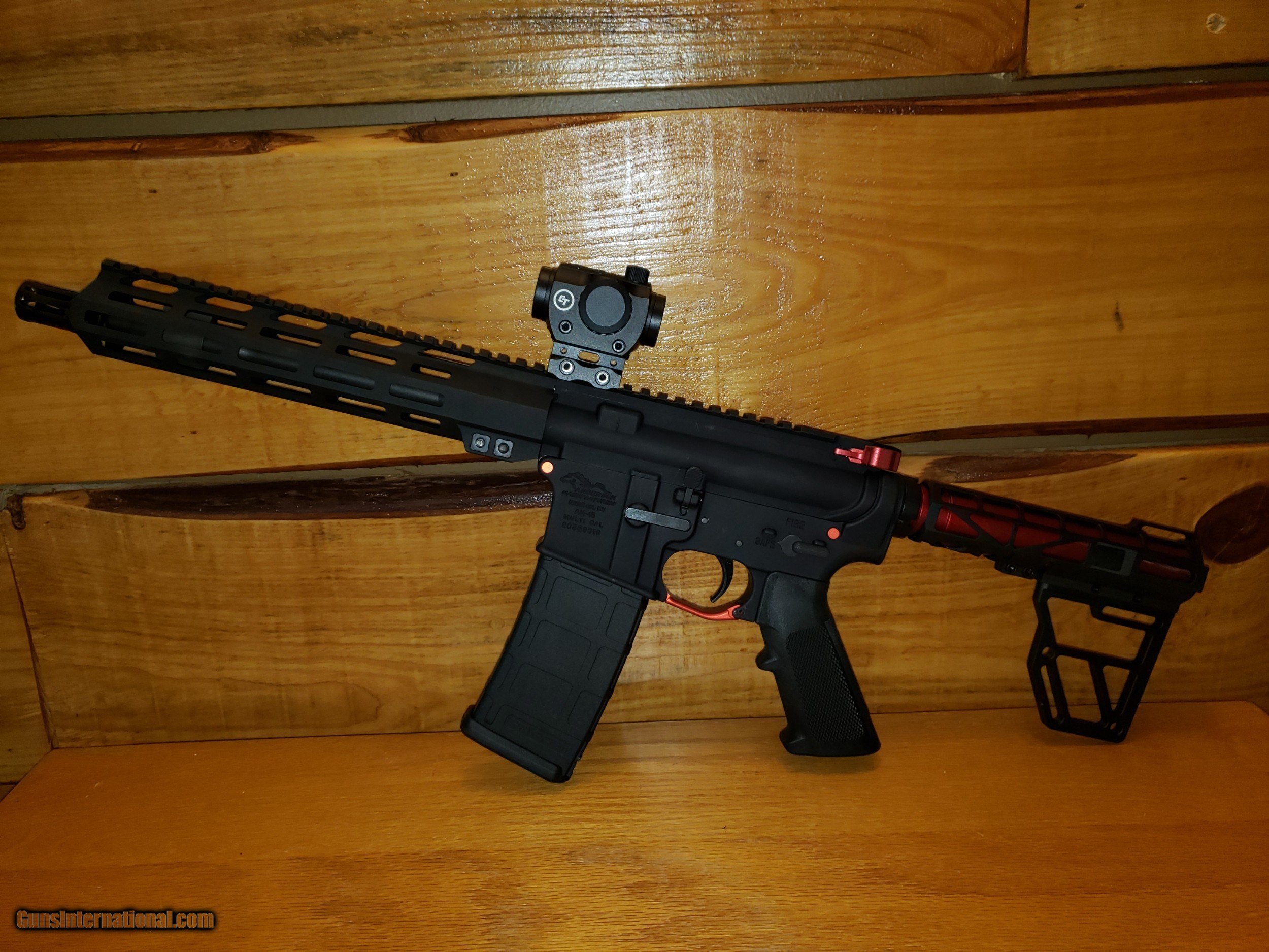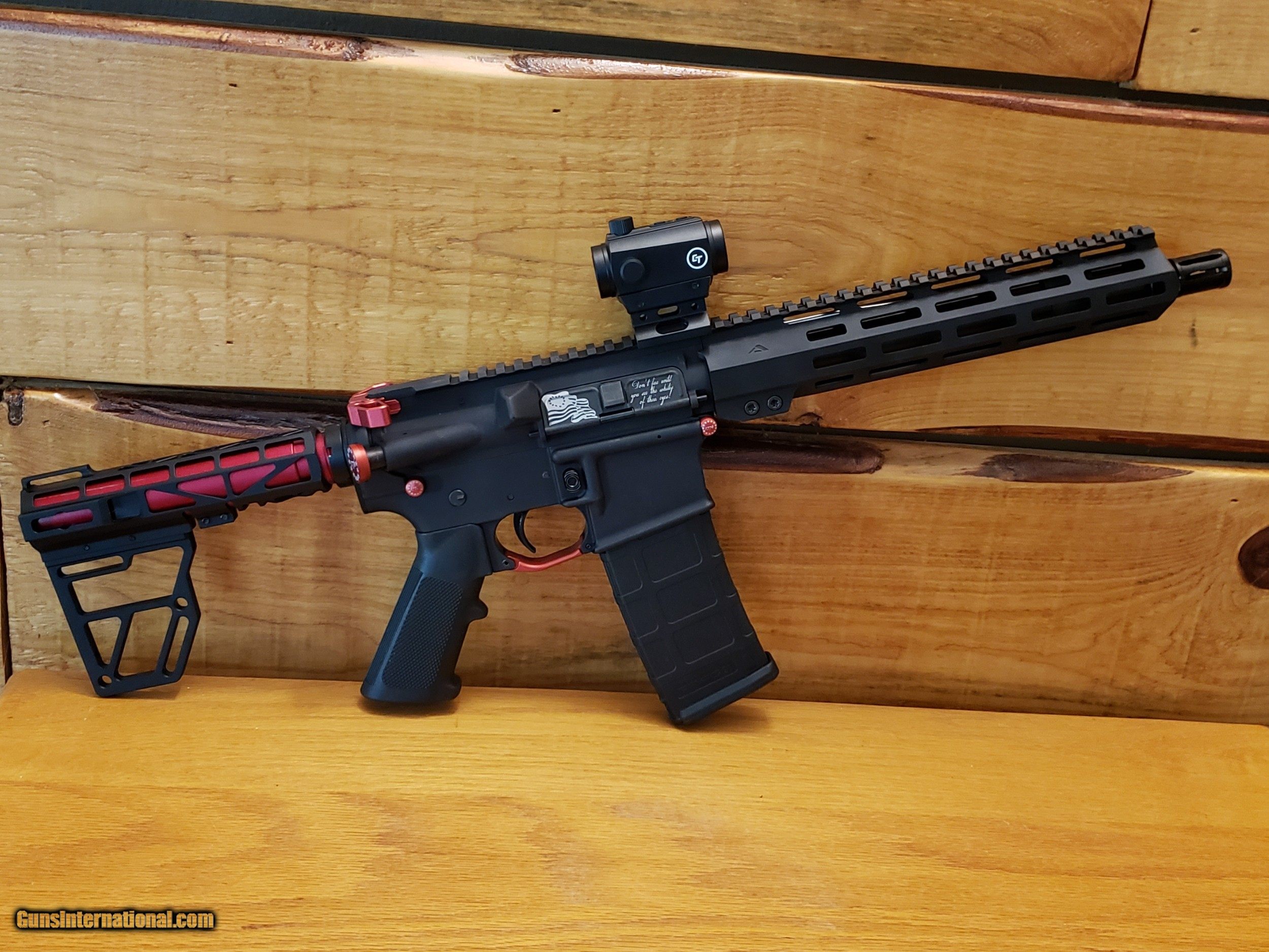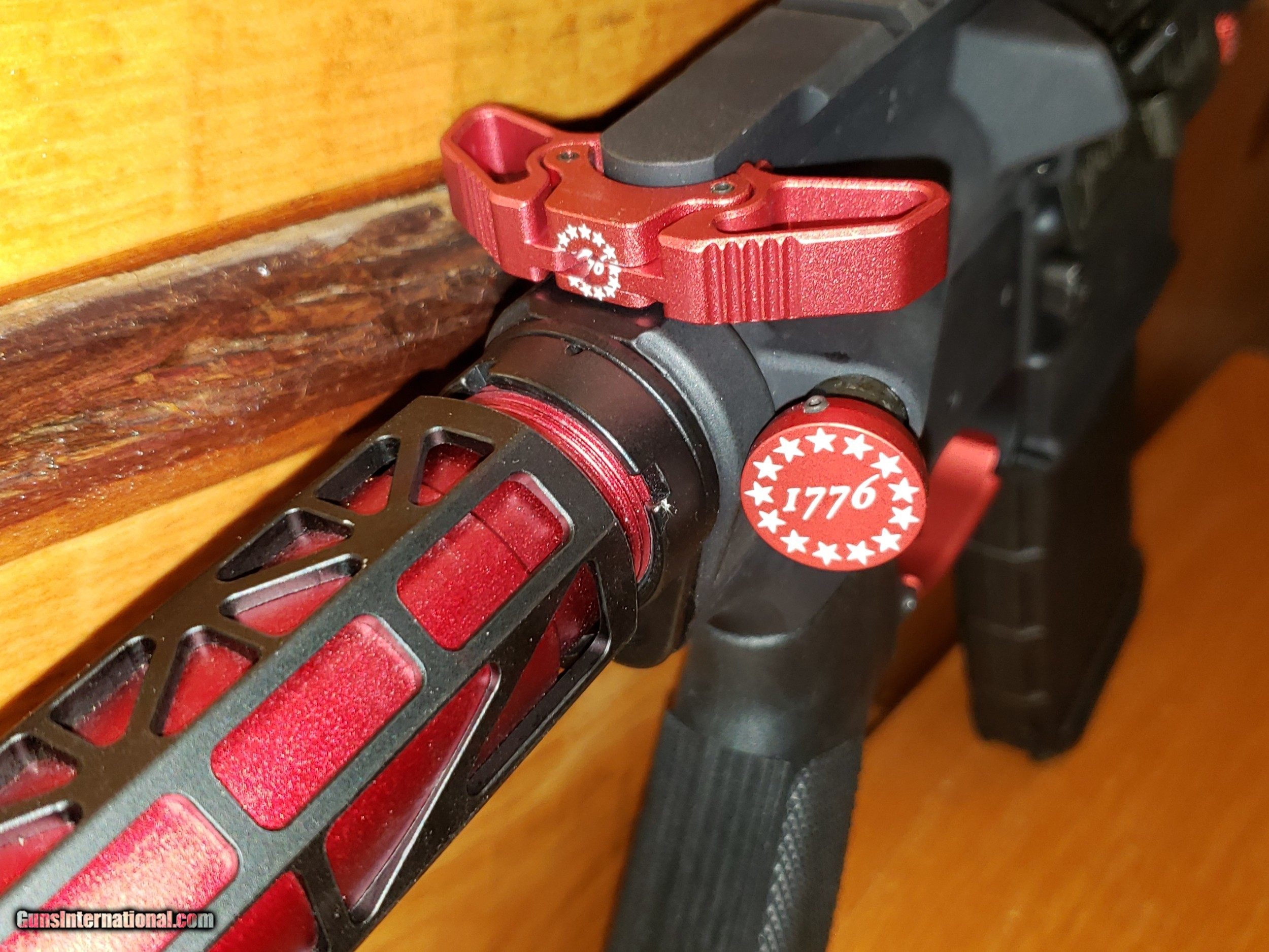 Description: Custom Betsy Ross AR15 pistol, anderson arms lower, CMMG lower parts kit, anderson arms upper, CMMG upper parts kit, 223 1:8 twist, 10.5 barrel, Betsy Rross pivot pins,Betsy Rross trigger guard, Betsy Rross charging handle, Betsy Rross forward assist, Skeltonized pistol brace, strike industries red buffer tube. 1 box of 223 bullets included SOLD |