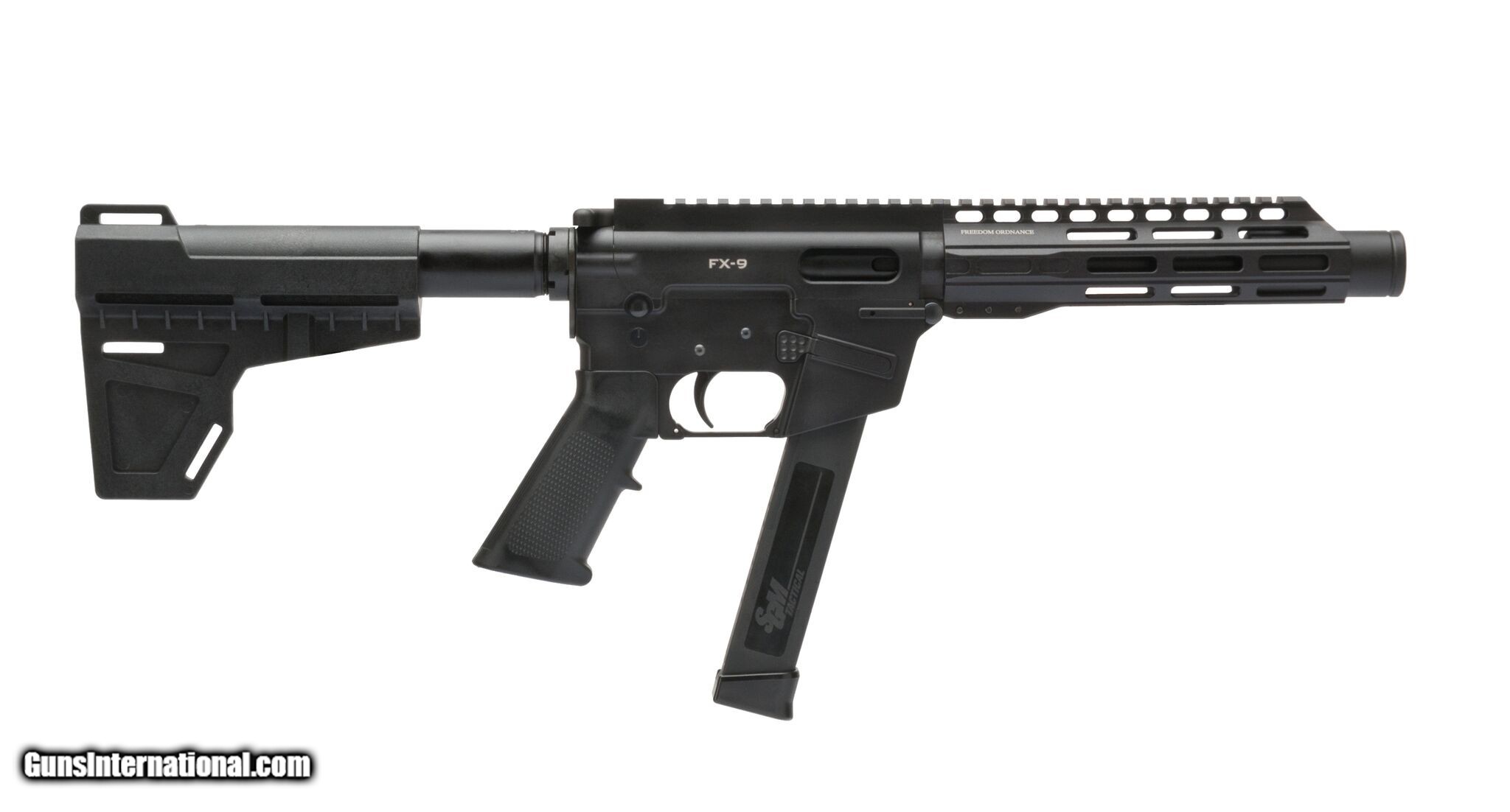 Description: BRAND NEW IN THE BOX AND READY TO SHIP! BUY IT NOW!! Manufacturer: Freedom Ordnance Model: Fx-9 SKU: 07028 Action: Semi-Auto Caliber: 9mm Capacity: 33 Rounds Barrel Length: 8.25" 3" Muzzle Enhancer (suppressor look alike) Weight: 5.55 lbs Overall Length: 24.5" The FX-9 pistol (Freedom Xtreme-9mm pistol) has a familiar set of operating controls for the avid AR-15 user, it accepts AR-15 stocks / braces and buffer tube assemblies, as well as most free float AR-15 rail assemblies. The FX-9 comes standard with a 33 round double stack Glock® style 9mm magazine. The FX-9 design goals were Reliability , Affordability, and familiar controls for the user. The FX-9 is machined from billet material, anodized type III aluminum components . Steel components are full hard nitride and nickle boron nitirded including the barrel, bolt, ejector, last round hold open, feed ramp and extractor for extended wear properties and corrosion resistance. The upper and lower receiver are more than 1.00" shorter than a standard AR-15 upper and lower receiver making it more compact and lighter than a standard mil-spec AR-15 design. Features: