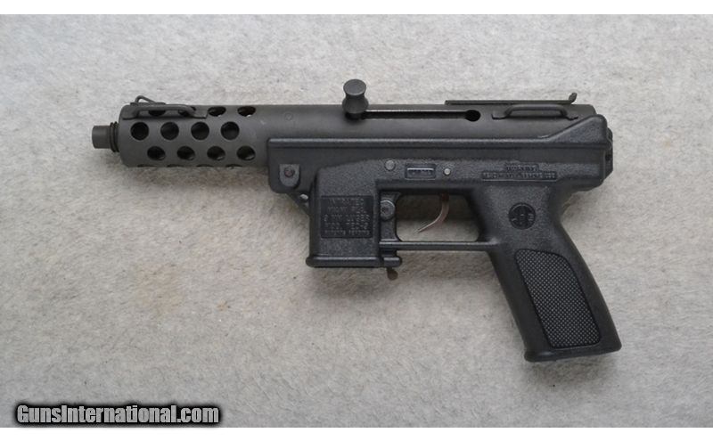 Description: This Intratec Model Tec-9 is a right hand semi-auto pistol in 9mm Cal. It has a 5 inch back threaded barrel with a vented barrel tube. A blade front sight and notch rear sight. The pistol grip is a checkered black polymer. It has a left side charging handle. 9mm Parabellum SOLD Chambers: 36 round magazine. Metal Condition: Very Good. Bore Condition: Excellent. Barrels: 5 inch back threaded barrel. Fore End: Vented barrel tube. Weight: 52 oz. Sights: Blade front. Notch rear. Item Location: Richfield, WI |
