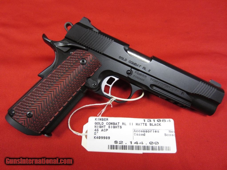 Description: Kimber Gold Combat RL II 45acp 5" w/ night sights (NEW)-- The Gold Combat RL II: matte black KimPro II finish on the stainless steel slide and frame, tactical rail, stainless hand fitted match grade bushingless bull barrel, fixed night sights with a cocking shoulder, brown micarta grips with a harringbone pattern, premium match grade aluminum trigger, checkered front strap and mainspring housing, ocking serrations on the front and rear of slide, extended magwell, flat top slide with fine serrations, and extended ambidextrous thumb safety. In stock for immediate delivery. SOLD |