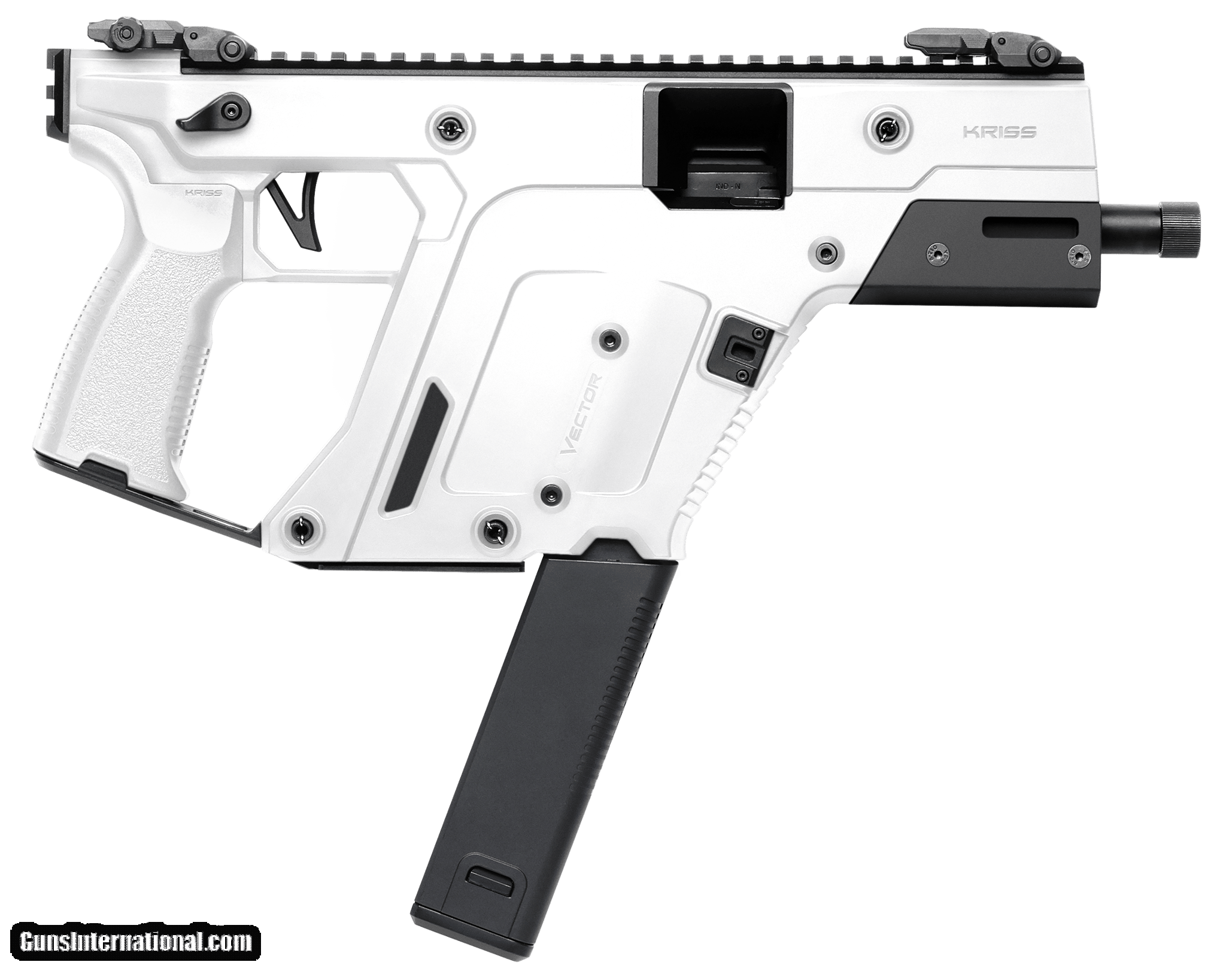 Description: Guns Listing ID: 574183 The Vector features Kriss‚s patented Super V Recoil Mitigation System that redirects the recoil impulses downward to counteract muzzle rise. This combined with the lowest bore axis of any firearm in the world gives the Vector unparalleled recoil control, allowing for lightning fast follow-up shots. The Gen 3 series features an updated receiver housing allowing users to add aftermarket pistol grips along with a Picatinny rail stock mount, improved magwell grip textures and side profiles for improved grip, and a new M-LOK handguard. The SDP variant comes in a pistol configuration. This model is chambered in .45 ACP and features a custom white \"Alpine\" color pattern and 5.5-inch threaded barrel. One 30-round magazine is included. Manufacturer: KRISS Model: VECTOR SDP GEN 3 Caliber Info: .45 ACP Condition: new Barrels: 5.5" BARREL Action: BLOWBACK Finish: white Weight: 5.6 LBS Price: por Contact Seller |
