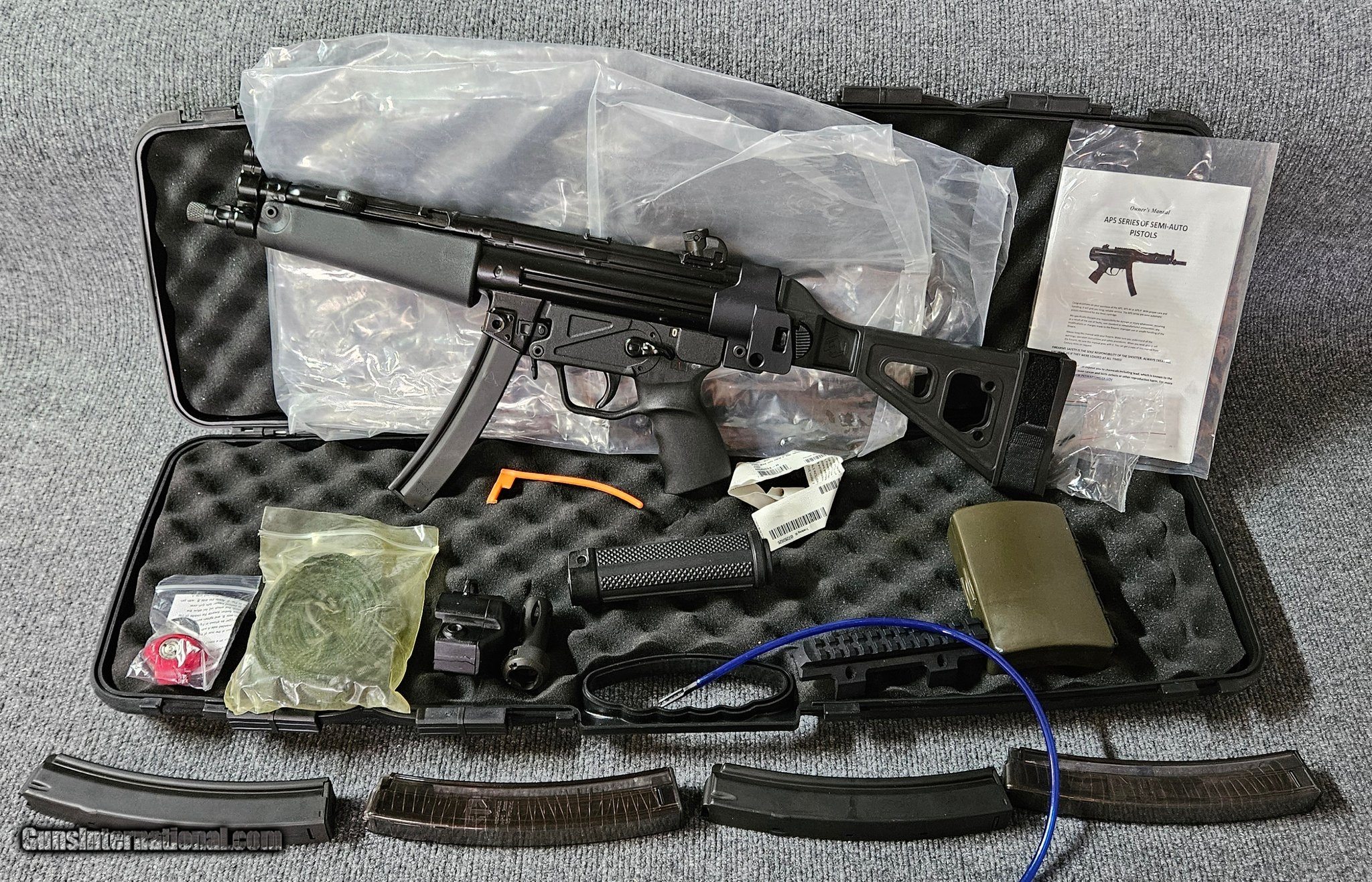 Description: Guns Listing ID: 500503 MKE AP5 – Excellent Condition Up for sale is a MKE AP5 (MP5 clone) in excellent condition. This roller-delayed blowback 9mm pistol is manufactured in Turkey by MKE, using original HK-spec machinery. It has been meticulously maintained and has only 90 rounds through it. Includes: ? Original hard case ? 5 - 30 round magazines ($240.00 value) ? Cleaning kit ? User manual ? SB tactical brace ($250.00 value) ? Upgraded front grip ($30.00 upgrade) ? Optic mount ? Sling This is a rare find for enthusiasts looking for a high-quality MP5-style pistol. The MKE SP5 is a civilian-legal version of the legendary MP5 submachine gun, manufactured by MKE (Mechanical and Chemical Industry Corporation) in Turkey. MKE has been producing MP5 variants under license from Heckler & Koch (H&K) for decades, making their SP5 one of the most authentic civilian MP5 clones available. History of the MKE SP5 Licensed MP5 Manufacturer: MKE has been producing the MP5 under an H&K license for military and law enforcement agencies. Civilian Market Entry: The SP5 was introduced as a semi-automatic version for civilian sales, following the growing demand for MP5-style firearms in the U.S. and other markets. Alternative to H&K SP5: While Heckler & Koch offers its own SP5, the MKE SP5 provides a similar platform at a more affordable price. Specifications of the MKE SP5 Caliber: 9x19mm (9mm Parabellum) Operating System: Roller-delayed blowback Fire Mode: Semi-automatic only Barrel Length: 8.9 inches (225mm) Overall Length: ~17.8 inches (453mm) without stock Weight: ~5.7 lbs (2.6 kg) without magazine Magazine: Uses standard MP5-style magazines (15, 30, and higher capacity available) Construction: Stamped steel receiver Welded top rail (in some models) Paddle magazine release (depending on variant) Sights: Rotary drum rear sight, Hooded front sight Stock Options: Sold as a pistol (no stock) Can be fitted with a brace or converted to an SBR with proper legal compliance Threaded Barrel: Tri-lug and 1/2x28 threads for suppressor compatibility Finish: Parkerized/phosphate-coated steel with a polymer grip module Conclusion The MKE SP5 is one of the best alternatives to an H&K SP5, offering an authentic MP5 experience at a more competitive price. It maintains the classic roller-delayed blowback action, compatibility with MP5 accessories, and excellent build quality due to MKE’s long-standing production of MP5 variants. SOLD Manufacturer: MKE Model: AP5 Caliber Info: 9MM LUGER (9x19 PARA) Condition: Used - Non-Certified Barrels: 9 Action: SEMI AUTOMATIC Finish: black |