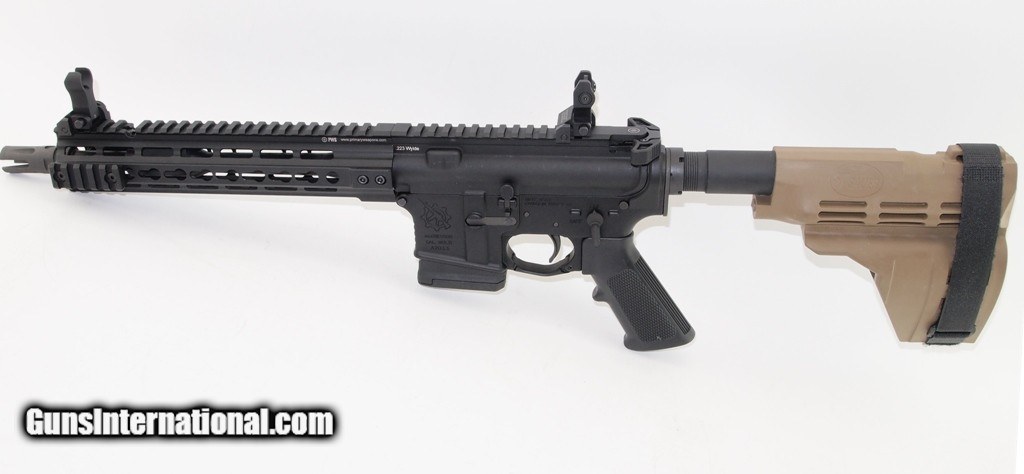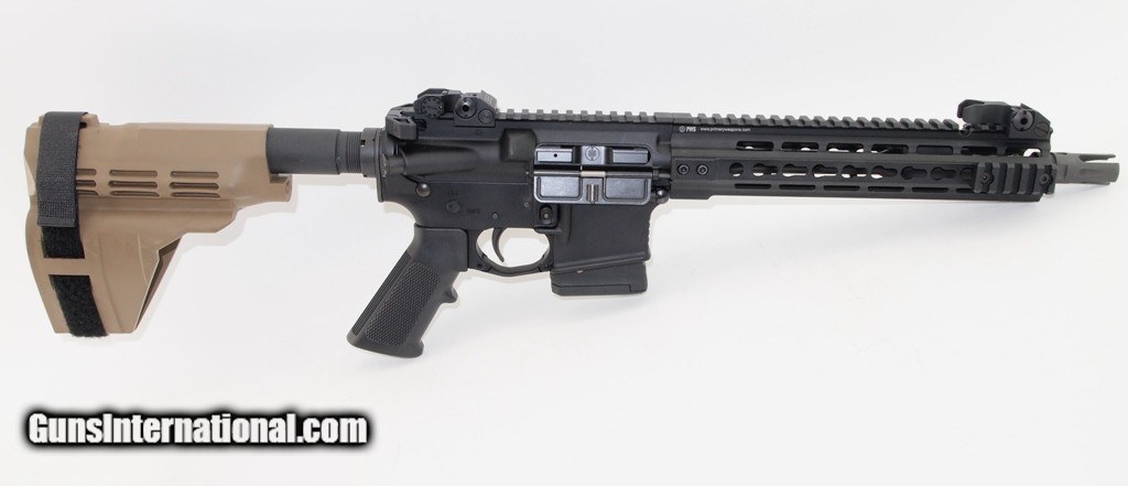 Description: Rifle Gear MK 110 Aggressor Pistol 5.56, 11" bbl, bright shiny bore, good rifling, flash hider, Troy Industries pop-up sights, adjustable aperture rear sight, post in wings front sight, PWS upper gas piston, 10" key mod hand guard, full top rail, 2" rails at 3:00 - 9:00, Radian Raptor LT charging handle, black pistol grip, OD SigSauer arm brace, and one 10 round magazine. Add 3% for Credit Card Shipping $35.00 SOLD |