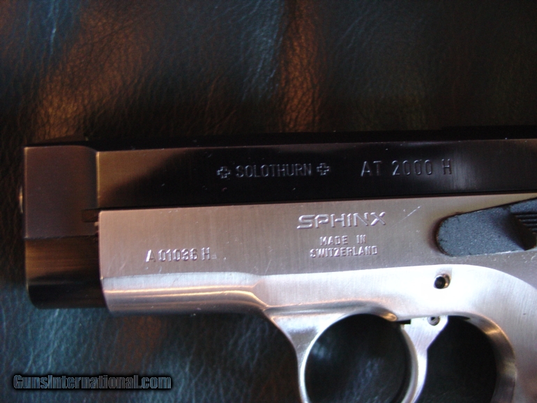 Description: SALE PENDING AWAITING FUNDS.This is a very rare older madel Sphinx AT2000H that is over 25 years old,I was told & made in Switzerland,& not mass produced & fitted to tight tolerances, & based on the CZ-75 Czech design,3 1/2" barrel, 2-11 round magazines, cleaning kit, 2 tone satin stainless & blue, checkered wood grips, double & single action,white sites,ambidextrous safety & slide release, magazine just flies out of the mag well, & it just feels so great in the hand !! this is not the newer cheaper versions from Kriss. looks only lightly test fired with a few minor marks on the frame. comes in the original serial numbered box with owners manual & warranty card. serial # is A01036H it is stamped Solothurn on slide.used mainly by special forces,elite police units & sports shooters. a great package at only $1695.firm + $35. shipping to your FFL dealer only. I am an FFL dealer,located in the Clearwater,Florida area.I accept bank wire transfers,bank & postal money orders,cashiers checks,or personal & business checks.no credit cards or PayPal. I now accept 60 day layaways with 1/3rd down & 1/3rd per month. be sure to check out all my other unique listings. SOLD |