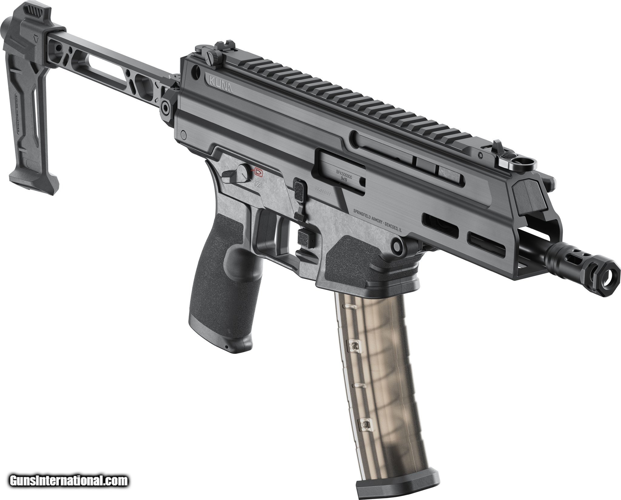 Description: Guns Listing ID: 499432 Designed to deliver exceptional shooting stability in a portable package, the Kuna houses a roller-delay operating system that dramatically reduces felt recoil and enhances control. Chambered in 9mm, it features a 6" threaded barrel with a muzzle brake, hybrid flip-up sights, and a 30-round translucent magazine with metal feed lips for reliable operation. Fully ambidextrous controls ensure seamless engagement for any shooter, while the non-reciprocating charging handle keeps handling smooth and unobstructed. The included Strike Industries FSA folding brace is attached to the integrated Picatinny rail end plate further enhancing shooting stability. This model is chambered in 9mm and includes two 30-round magazine. Guns Springfield Kuna Review Manufacturer: SPRINGFIELD ARMORY Model: KUNA Caliber Info: 9MM LUGER (9x19 PARA) Condition: new Barrels: 6.0" BARREL Action: BLOWBACK Finish: black Weight: 5.3 lbs Price: $1,999.99 Contact Seller |