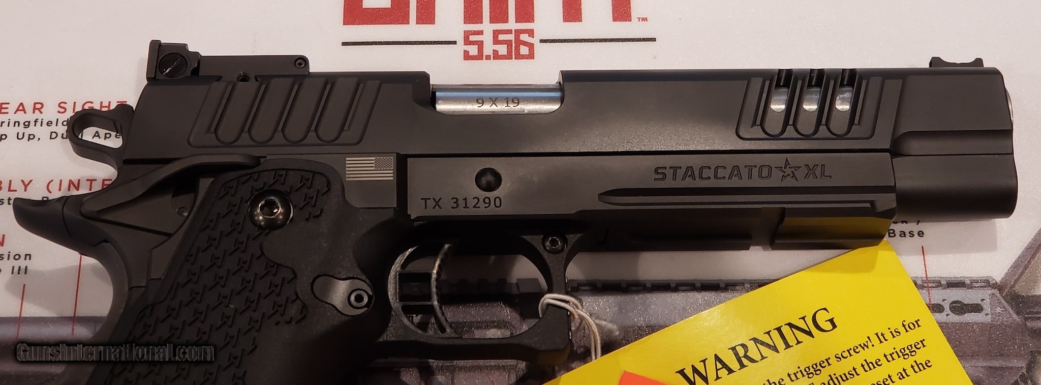 Description: Guns Listing ID: 321382 STI Staccato 2011 XL 9mm 5.4 inch barrel all black three 20-round magazines NIB SOLD Manufacturer: STACCATO Model: NIB 2011 XL Caliber Info: 9 MM Condition: Used - Non-Certified Barrels: 5.4 BARREL Finish: BLACK |