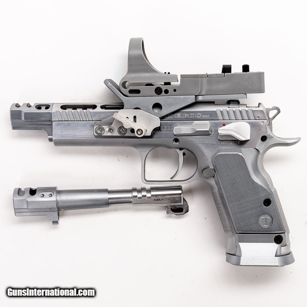 Description: Guns Listing ID: 350390 Offered for sale is an EAA Tanfoglio Witness Gold. This premium quality competition handgun is chambered in 9mm and in very good condition! Tanfoglio firearms have been used to win countless professional competitions and are known for their impeccable performance. This Witness Gold has a C-More red dot plate installed and thumb-installed base pads. Purchase includes the original case, manual, two 17-round magazines, flat base plate, a cleaning kit, two barrels, and two guide rod springs. SOLD Manufacturer: TANFOGLIO Model: WITNESS GOLD CUSTOM ERIC Caliber Info: 9MM LUGER Condition: Used - Certified Barrels: 5.3 BARREL Finish: STAINLESS |