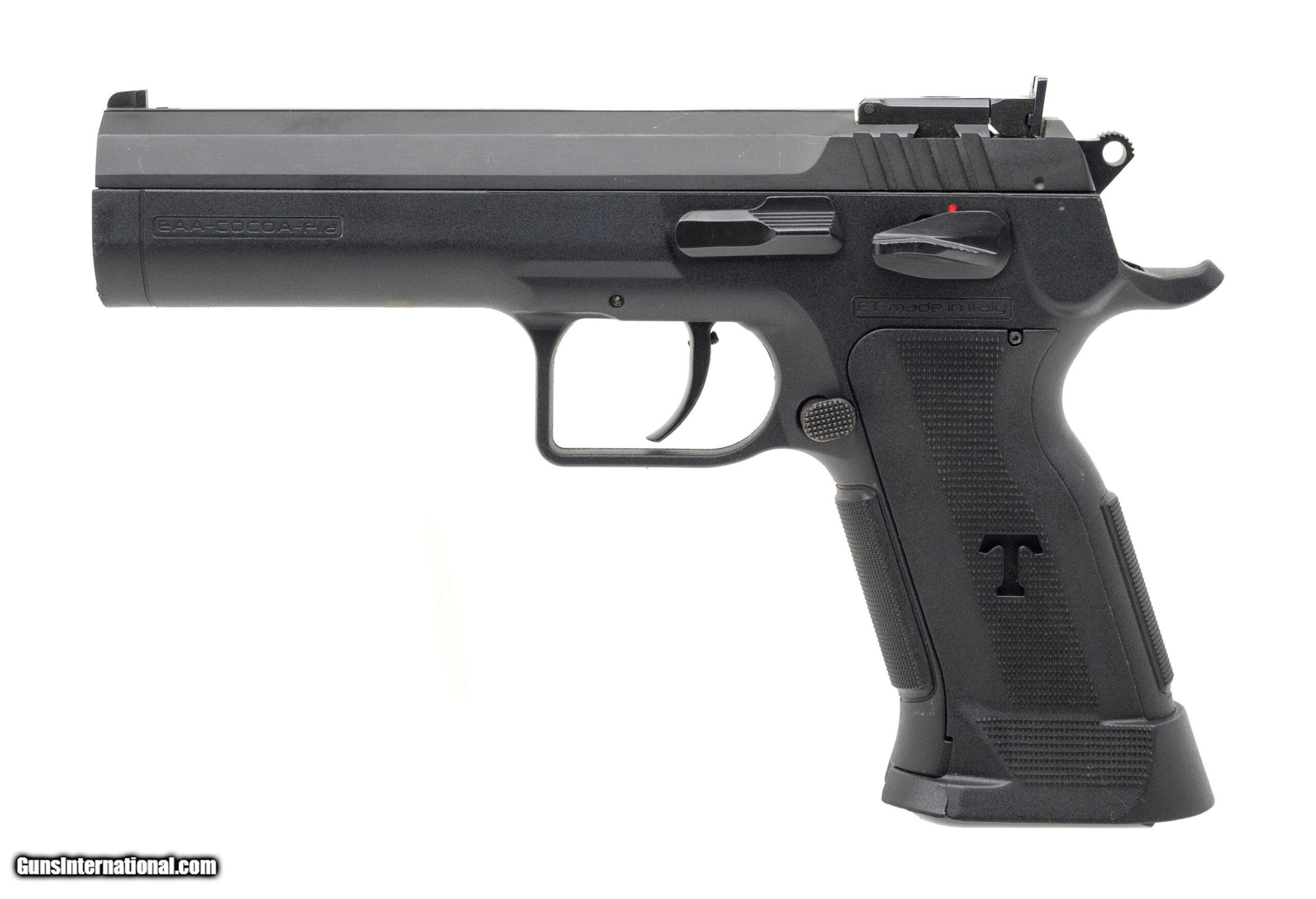Description: "SN: MT44298. Modern production, .38 Super with a 4.75"" barrel. Bore is bright with strong rifling. Full size double action match grade pistol with a polymer frame, flared magwell, and ambidextrous safety controls. Overall condition is very good. Price: $695.00 Contact Seller |