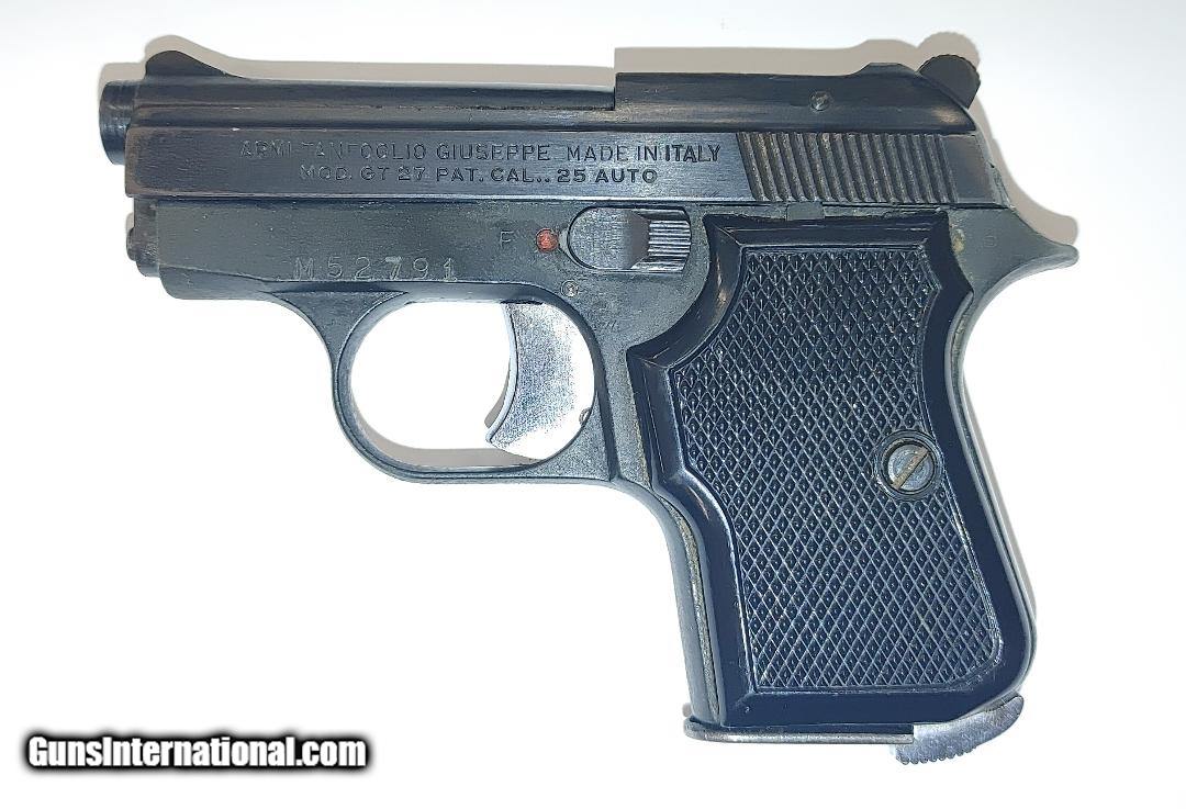 Description: Guns Listing ID: 499410 The Tanfoglio GT27 is a .25 ACP caliber, blow-back operated, single-action, 7 round magazine fed single action handgun manufactured in Italy by Tanfoglio. Type single action handgun Place of origin Italy Production history Manufacturer Tanfoglio Produced ~1962 Specifications Mass0.77 lb (0.35 kg) Length4.72 in (120 mm) Barrel length 2.48 in (63 mm) Cartridge.25 AC ActionBlow-back, single-actio Feed system7 round mag SightsFixed blade front, fixed V notch rear SOLD Manufacturer: TANFOGLIO Model: GT27 Caliber Info: .25 ACP Condition: Used - Non-Certified Barrels: 2.5 Action: SEMI AUTOMATIC Finish: black |