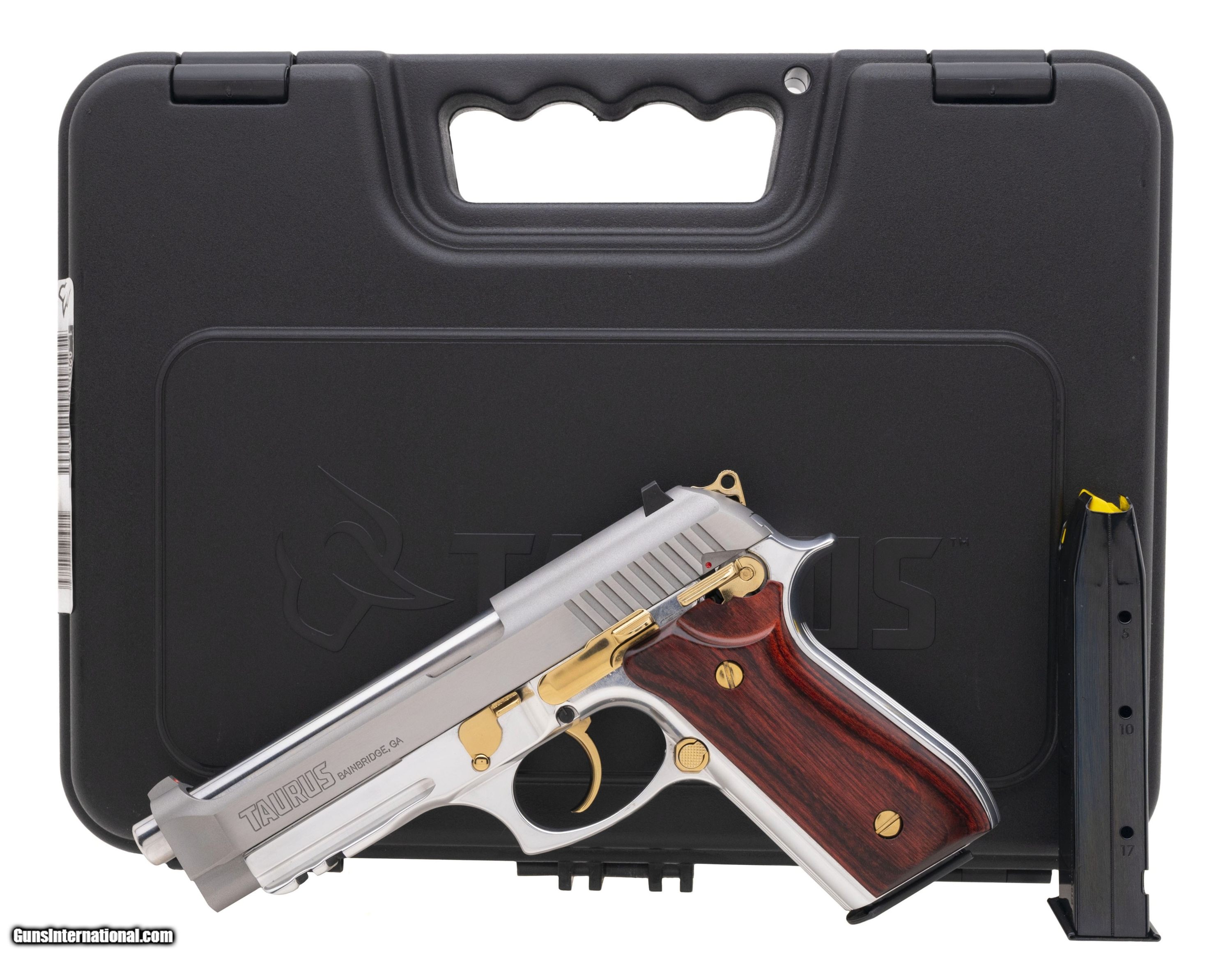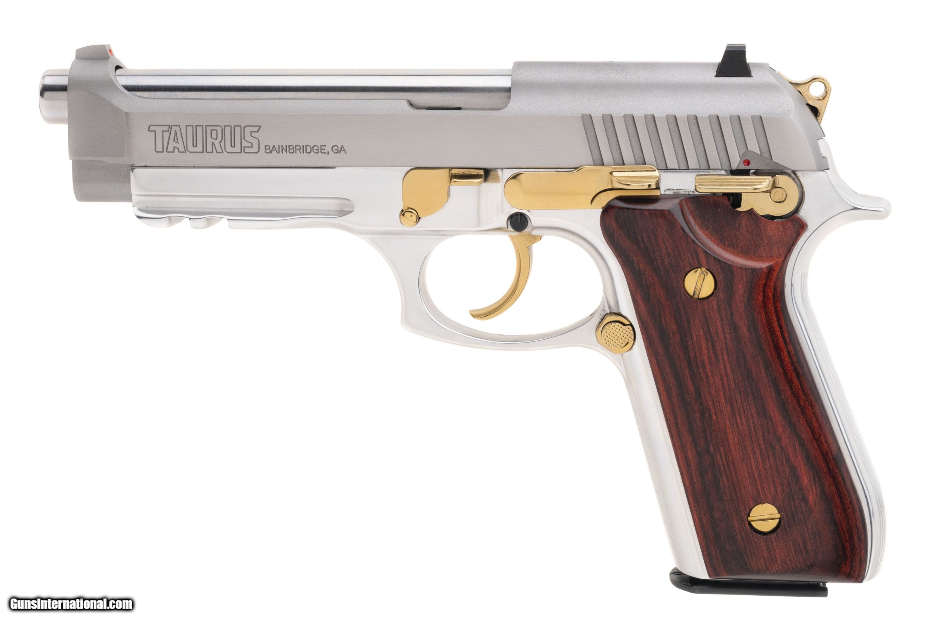 Description: "Full size handgun with a 4.9"" barrel. Gold accent part, wooden grips and 17 Round capacity magazine. NEW. UPC: 725327940739 (STOCK PHOTO) SOLD |