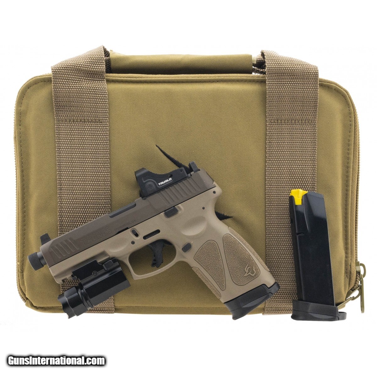 Tactical optic ready duty pistol with 4.5"" threaded barrel and suppressor height sights in FDE tan cerakote. Comes with range bag, optic plates, and extra magazine. Comes with TRUGLO XR24 and VAastfire. NEW. UPC: 725327936558