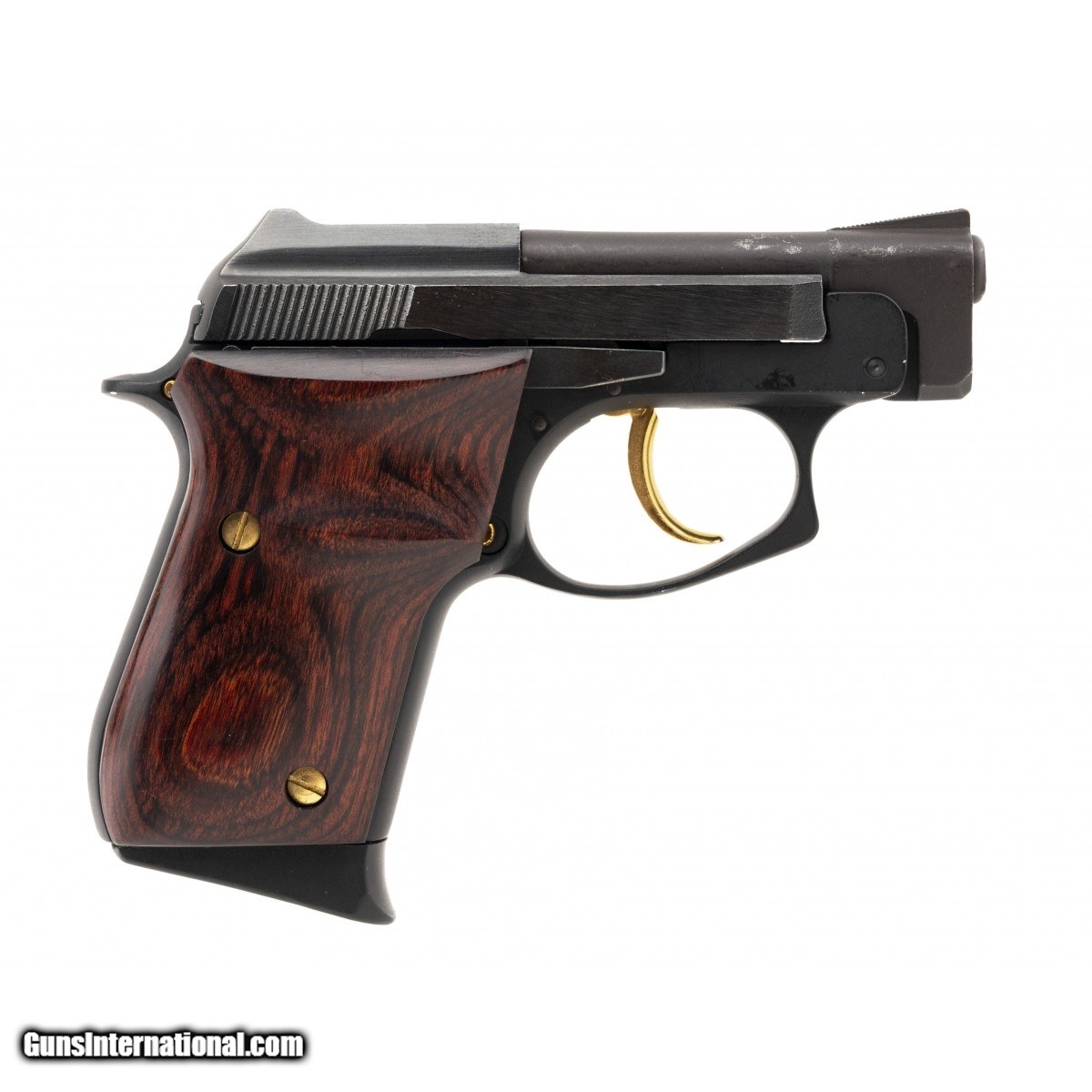 Description: " Pocket pistol with Tip-up barrel with gold accents and wood grips. Blued finish. Overall very good condition. SOLD |