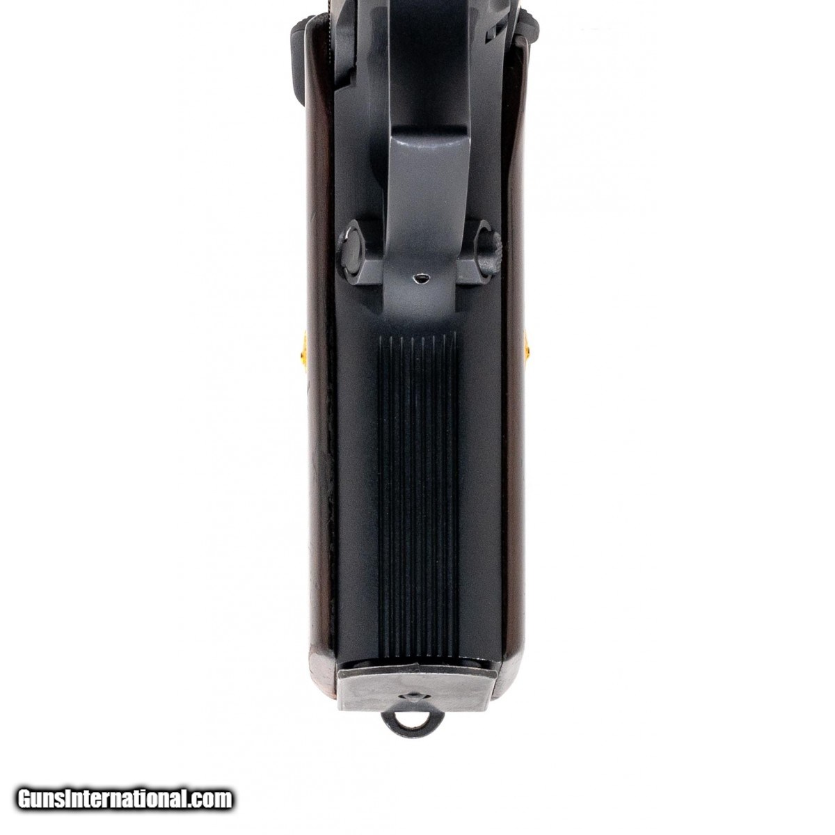 Description: " SN:TJH56918. Modern production, 9mm, with a 5"" barrel. Bore is excellent. Full size semi automatic pistol. Has 97% original finish. Grips are very good plus with minor wear. Overall in very good plus condition. SOLD |