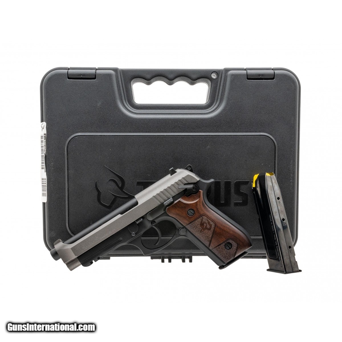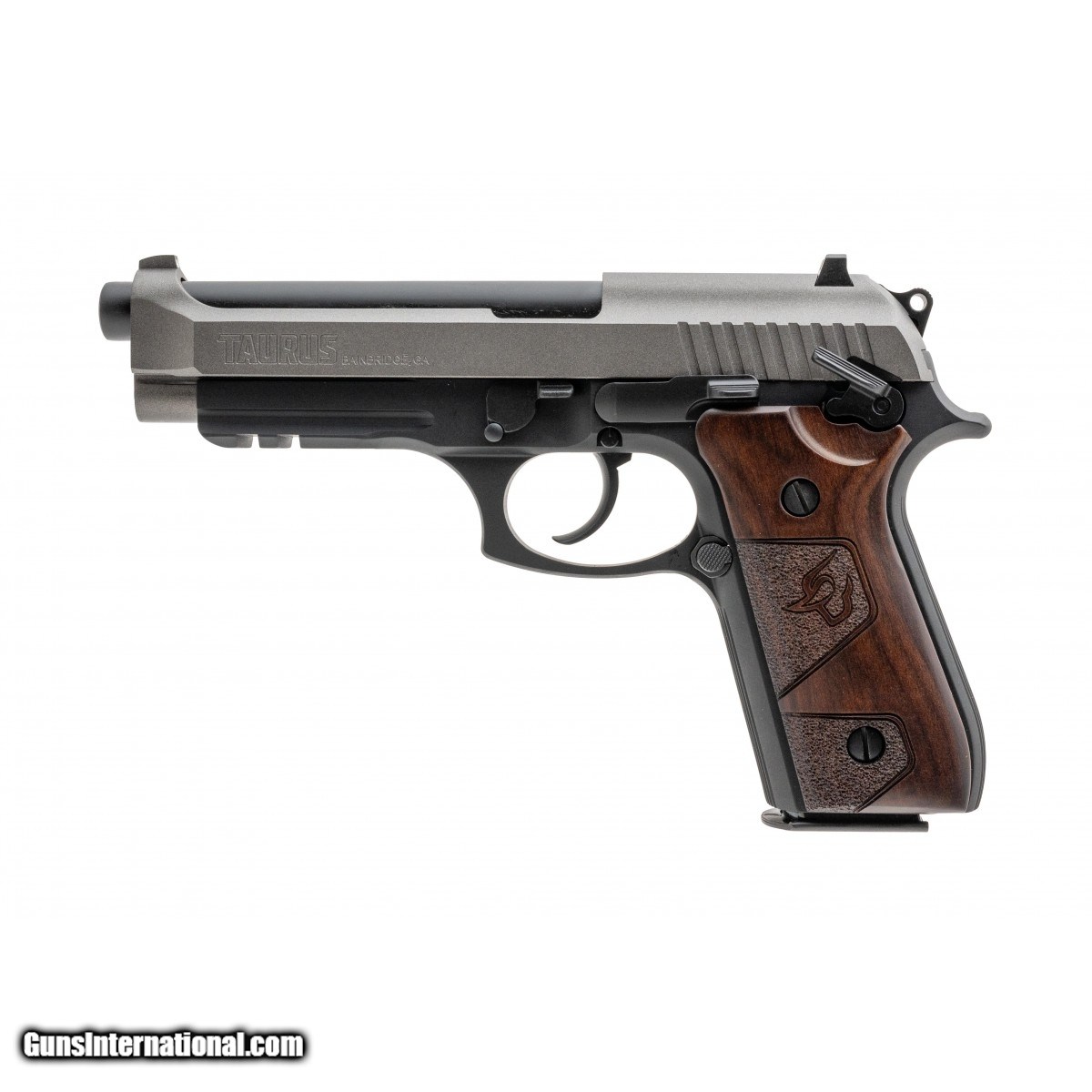 Full size double action handgun. 5"" barrel. Alloy frame with black and Tungsten two tone finish. 17 Round capacity magazine. 3 Dot sights and wood grips. New. UPC: 725327940722.