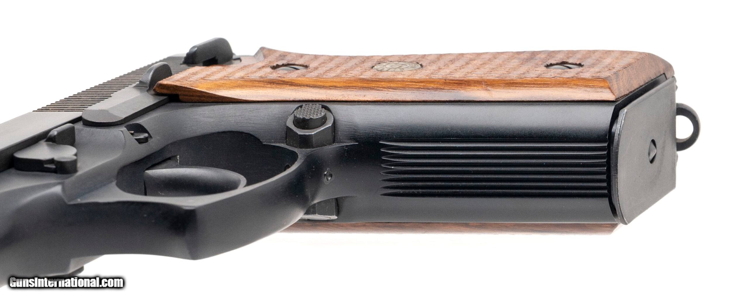 Description: "SN: TMK22377D. 1980s vintage, 9mm with a 4.9"" barrel. Bore is excellent. Full size steel frame double-action pistol with 3 dot sights, ambidextrous manual thumb-safety, matte blued finish, and checkered wood medallion grips. Finish shows minor handling marks. Overall condition is very good. Price: $595.00 Contact Seller |