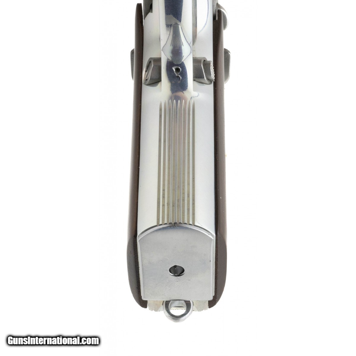 Description: "SN: TKI15603. Modern production with a 4.9"" barrel. Bore is in excellent condition. Stainless steel target handgun with wood grips and adjustable target sights. Overall condition is very good. Comes with box. SOLD |