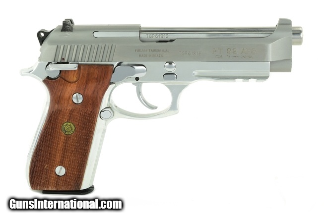 Description: Taurus PT 92AFS 9mm caliber pistol. Stainless railed model in very good condition in box and extra magazine.