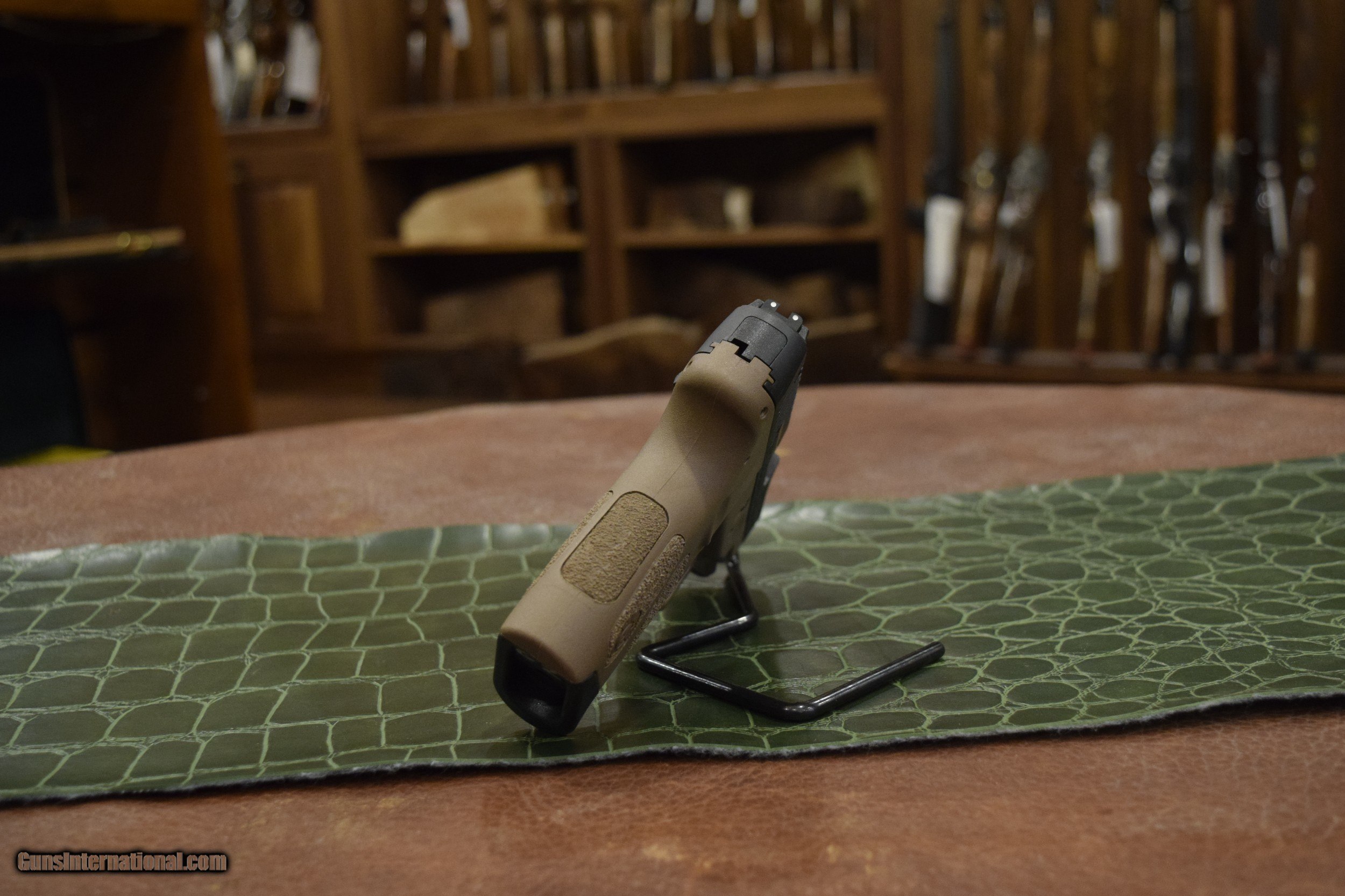 Description: Lightweight compact polymer frame, thin profile and ramped 3.2 inch barrel. Single action/double action. Aggressive, textured grip and melted edges for added comfort and concealment. Loaded chamber indicator. Manual safety and trigger safety. Accessory rail. Taurus Security System. High profile, adjustable 2-dot rear sight, fixed front sight. This item comes with 2 magazines and a hard case. Overall condition is excellent with little to no wear from use. Pre-Owned - Taurus Millennium G2 PT111 Semi-Auto 9mm 3.25" FDE Handgun