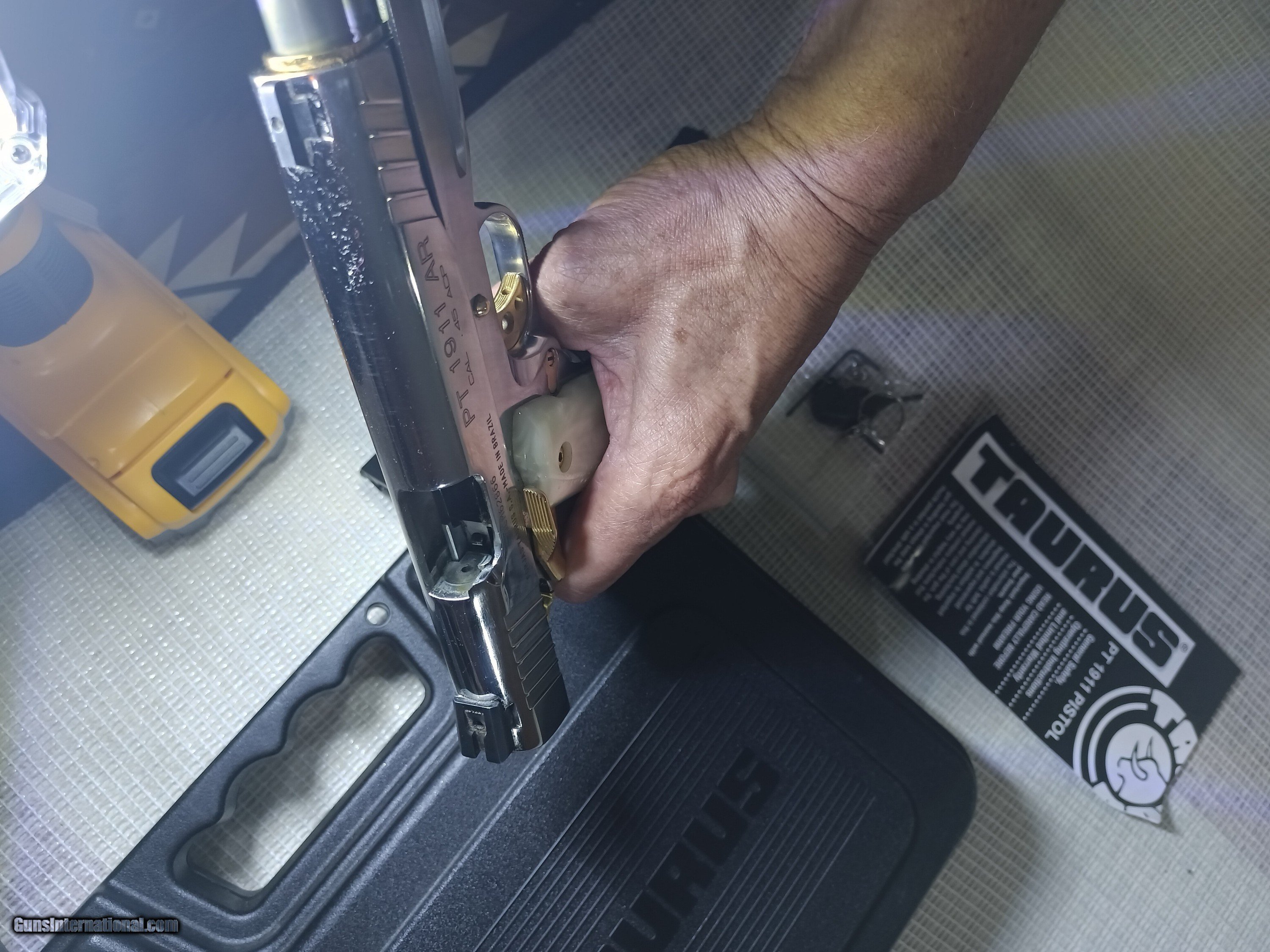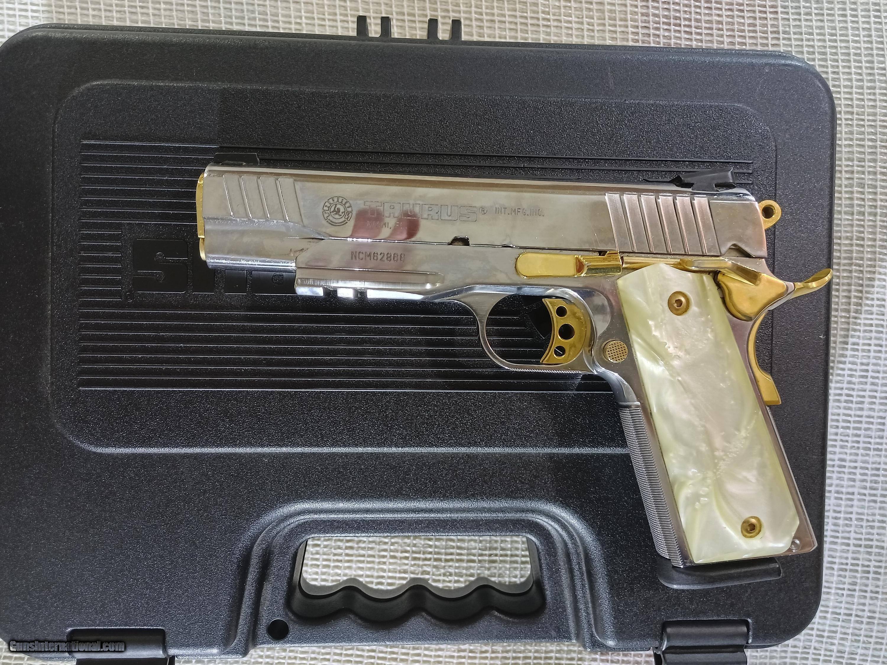 STAINLESS & GOLD w PEARL GRIPS - Taurus PT 1911 AR .45ACP *6*Mags, 1-Double Mag Holder