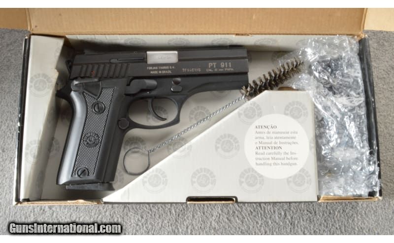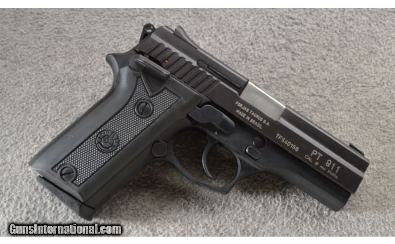 Description: The Taurus PT 911 is a 9 mm pistol with a 4" barrel. This gun features a matte black finish, DA/SA trigger, ambi safety/decock, fixed 3 dot sights and wears the factory black plastic grips. Includes the factory box, (2) 10 round magazines, cleaning brush. This gun is in great condition with slight finish loss at the muzzle. 9mm Luger SOLD Chambers: 10+1 semi auto. Bore Condition: Bright strong bore. Barrels: 4" barrel. Triggers: SA/DA. Weight: 2 lbs Sights: 3 Dot. Item Location: Owatonna, MN |