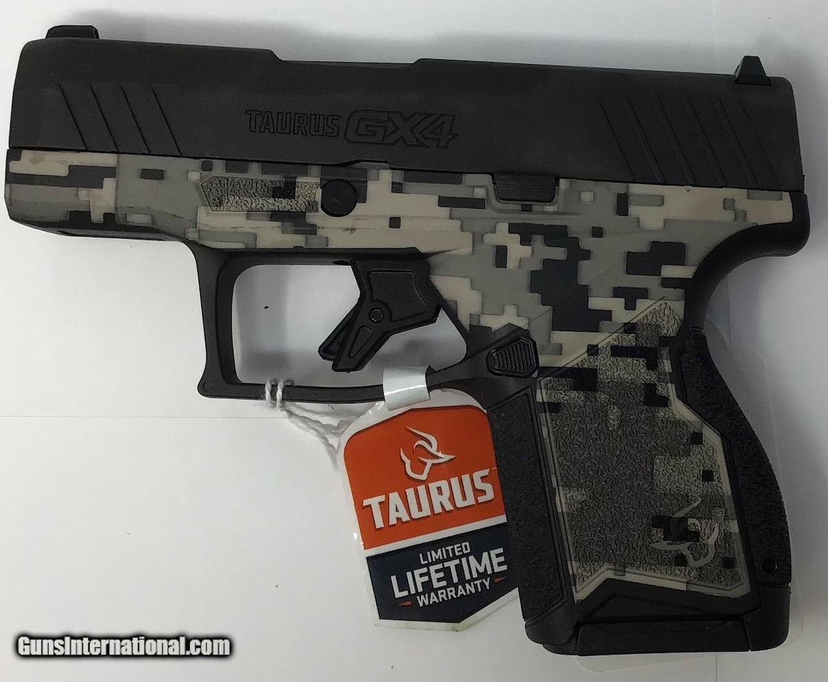 Description: Guns Listing ID: 731508 MANUFACTURER: Taurus FAMILY: GX4 Series MODEL: GX4 TYPE: Semi-Auto Pistol ACTION: Striker Fired CALIBER/GAUGE: 9mm FINISH: Black Gas Nitride Treatment FINISH TYPE: Applied Finish FRAME: Polymer Frame STOCK/GRIPS: Shattered Camo Polymer BARREL: 3.06\" OVERALL LENGTH: 6.05\" CAPACITY: 11 + 1 # OF MAGAZINES: 2 MAG DESCRIPTION: 11 rd. SIGHTS: Black Serrated White Dot SIGHT TYPE: Adjustable Sights WEIGHT: 18.5 oz. SHIPPING WEIGHT: 2.7 lbs. SAFETY FEATURES: Trigger Safety Blade ADDL INFO: Flat Face Serrated Trigger ADDL INFO: Front Side Serrations ADDL INFO: Steel Recoil Rod MFG MODEL NO: 1-GX4M931-EN3 UPC: 725327939382 SOLD Manufacturer: TAURUS Model: 1-GX4M931-EN3 Caliber Info: 9X19MM Condition: Used - Non-Certified Barrels: 3 BARREL |