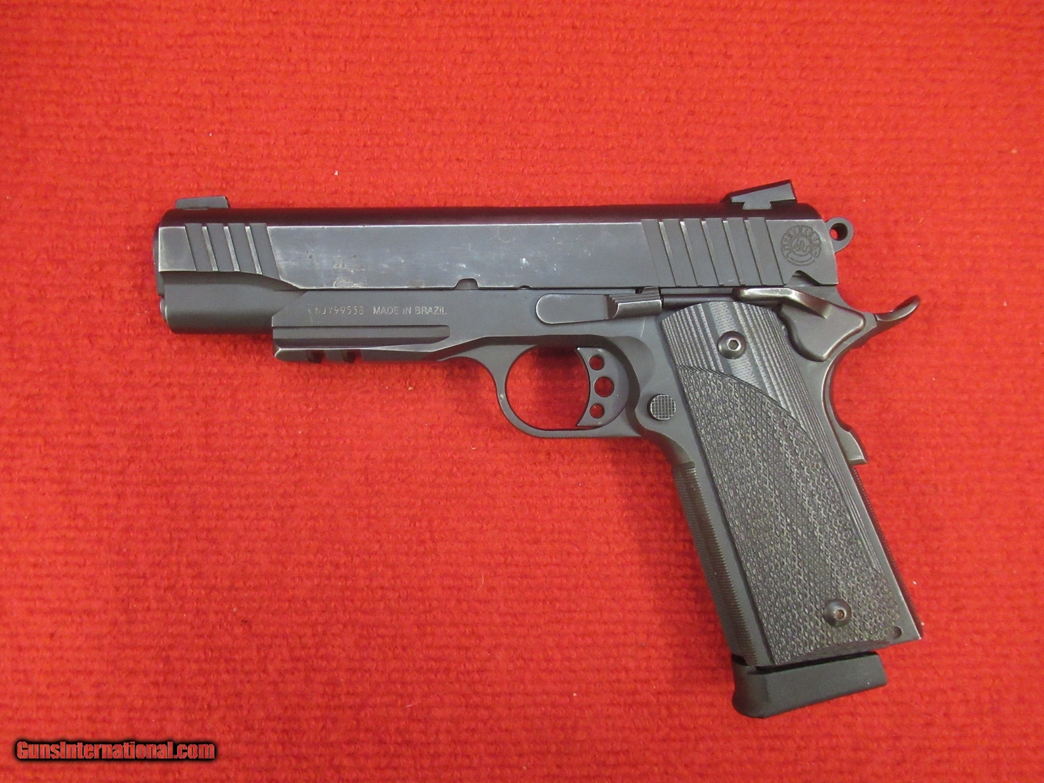 Description: Guns Listing ID: 834925 #331B Gun is in excellent working condition. Gun does show some wear (bluing worn off) from being holstered. Other than that gun is pretty clean. Attachment rail on bottom for laser or flashlight. Nice 1911 style pistol. ##% SOLD Manufacturer: TAURUS Model: 1911 Caliber Info: .45 ACP Condition: Used - Non-Certified Barrels: 5 BARREL |