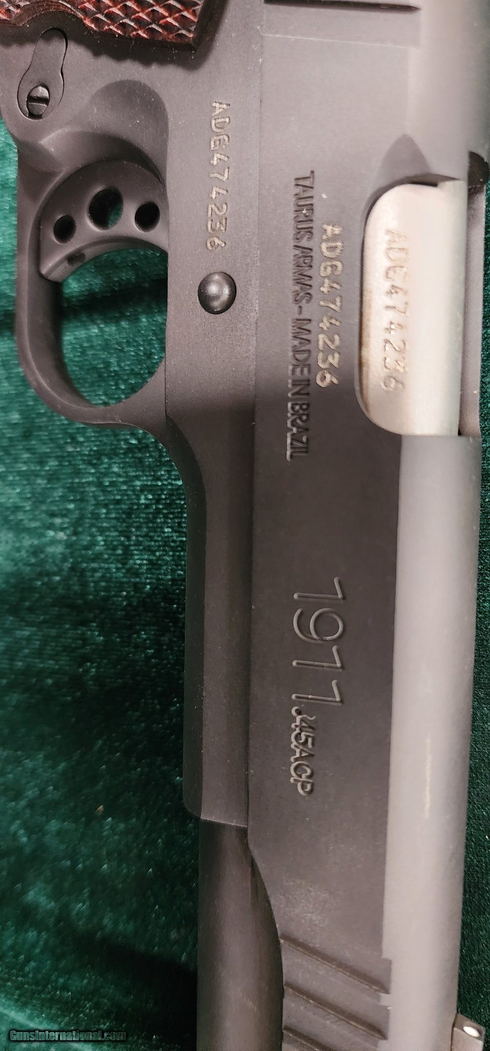 Description: Guns Listing ID: 1311520 Taurus machines every part of its 1911 with the frames barrels and slides all hammer forged from ordnance grade steel. Available in a variety of calibers each edition of the Taurus 1911 comes with a ventilated and lighter trigger and wood grips. The beavertail grip safety is an excellent feature for users seeking a self-defense or competition firearm. Destined to become the standard that all 1911 pistols are compared against the Taurus 1911 offers you the most accurate and feature-laden model on the market today. Starting with our own hammer-forged -not cast-ordnance grade steel frames slides and barrels we machine each and every part to tolerance levels that surpass even todays industry standards. Our skilled pistol smiths hand-fit and tune each gun with the 19 standard features seen below using quality parts that are built 100 in our state-of-the-art factory. Then they mark the slide barrel and frame with matching serial numbers. Available in the powerful .45 ACP this aggressive rock-solid firearm is ready to go right out of the box. The Taurus 1911 is an unbeatable gun that is also an unbeatable value. - Finish Black - Caliber 45 Auto - Grips Wood - Capacity 8 1 - Weight 38 oz - Rate of Twist 116 - Barrel Length 5 - Height 5.45 - Frame Large - Width 1-12 - Action SA - Front Sight Heinie - Length 8 12 - Grooves 6 - Safety Manual Safety Manual Safety - Trigger Type Smooth - Grooves Turn Left SOLD Manufacturer: TAURUS Model: 1911 Caliber Info: .45 ACP Condition: Used - Non-Certified Barrels: 5 BARREL Finish: BLACK |