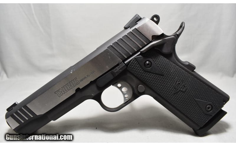 Description: This Taurus 1911 .45 ACP is in outstanding condition. It has a few small scratches and a couple of scuff marks. It comes with two extra 8 round magazines, manual, and factory hard case. Very nice looking gun and setup for a cheap price. .45 ACP SOLD Chambers: .45 with an 8 round magazine Metal Condition: Very Good Bore Condition: Very Good Barrels: 5 Weight: 3 Sights: Adjustable Front and Rear Item Location: Kansas City, KS |