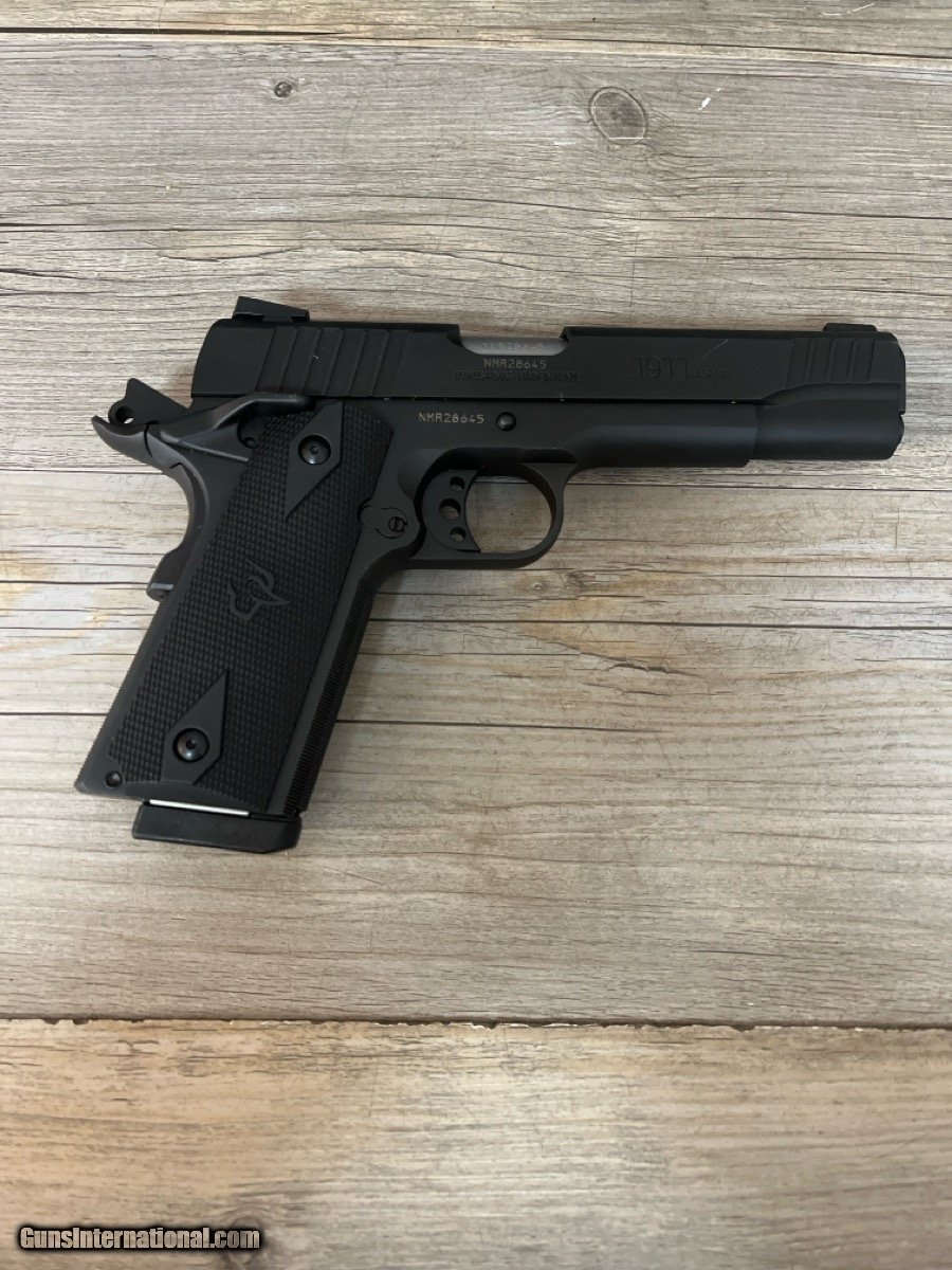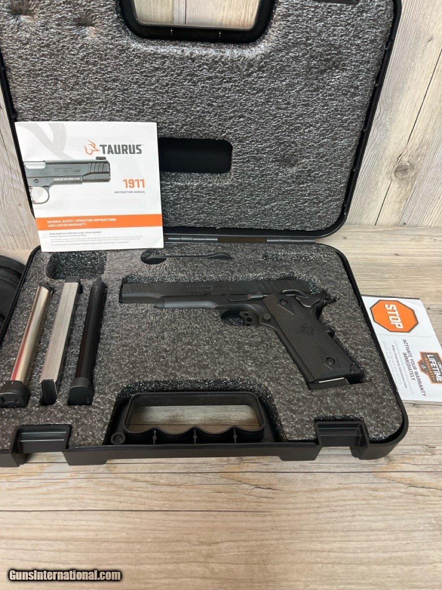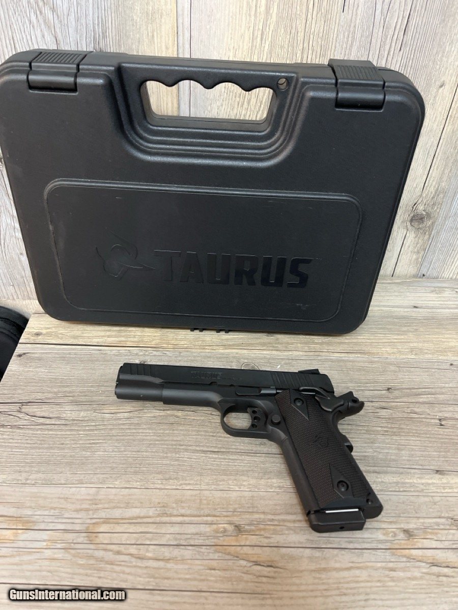 Description: Guns Listing ID: 509025 PISTOL: TAURUS FIREARMS MODEL 1911, SERIAL NUMBER NMR28645, SEMI - AUTOMATIC, 45 ACP (45 AUTO), BLACK (MATTE), YES - INCLUDES ORIGINAL BOX AND PAPERS, 5\", HAS 3 EXTRA MAGS AND A HARD CASE Taurus 1911 .45 ACP Semi-Auto Pistol – Full-Size Performance, Classic Design The Taurus 1911 in .45 ACP delivers the iconic 1911 platform with modern enhancements and exceptional value. Built to exacting standards, this full-size handgun features a forged steel frame and slide for durability, and a match-grade barrel for improved accuracy. The trigger is crisp and responsive, delivering consistent performance shot after shot. Designed with both tactical function and classic aesthetics in mind, the Taurus 1911 includes Novak® drift-adjustable sights, front and rear slide serrations, and an extended beavertail grip safety. Whether you‚‚re a seasoned shooter or looking for a reliable addition to your collection, the Taurus 1911 offers power, precision, and timeless appeal. Key Features: Caliber: .45 ACP Barrel Length: 5 inches Capacity: 8+1 rounds Frame/Slide: Forged steel construction Sights: Novak® drift-adjustable Safety: Manual thumb safety & grip safety Finish: Blued, Stainless, or Custom finishes available (varies by model) Extras: Checkered grip panels, skeletonized trigger and hammer, ambidextrous safety (on select models) Ideal for home defense, range use, or competitive shooting, the Taurus 1911 blends affordability with proven performance in a platform trusted for over a century SOLD Manufacturer: TAURUS Model: 1911 Caliber Info: .45 ACP Condition: Used - Non-Certified Barrels: 5 Action: SEMI AUTOMATIC Finish: black matte |