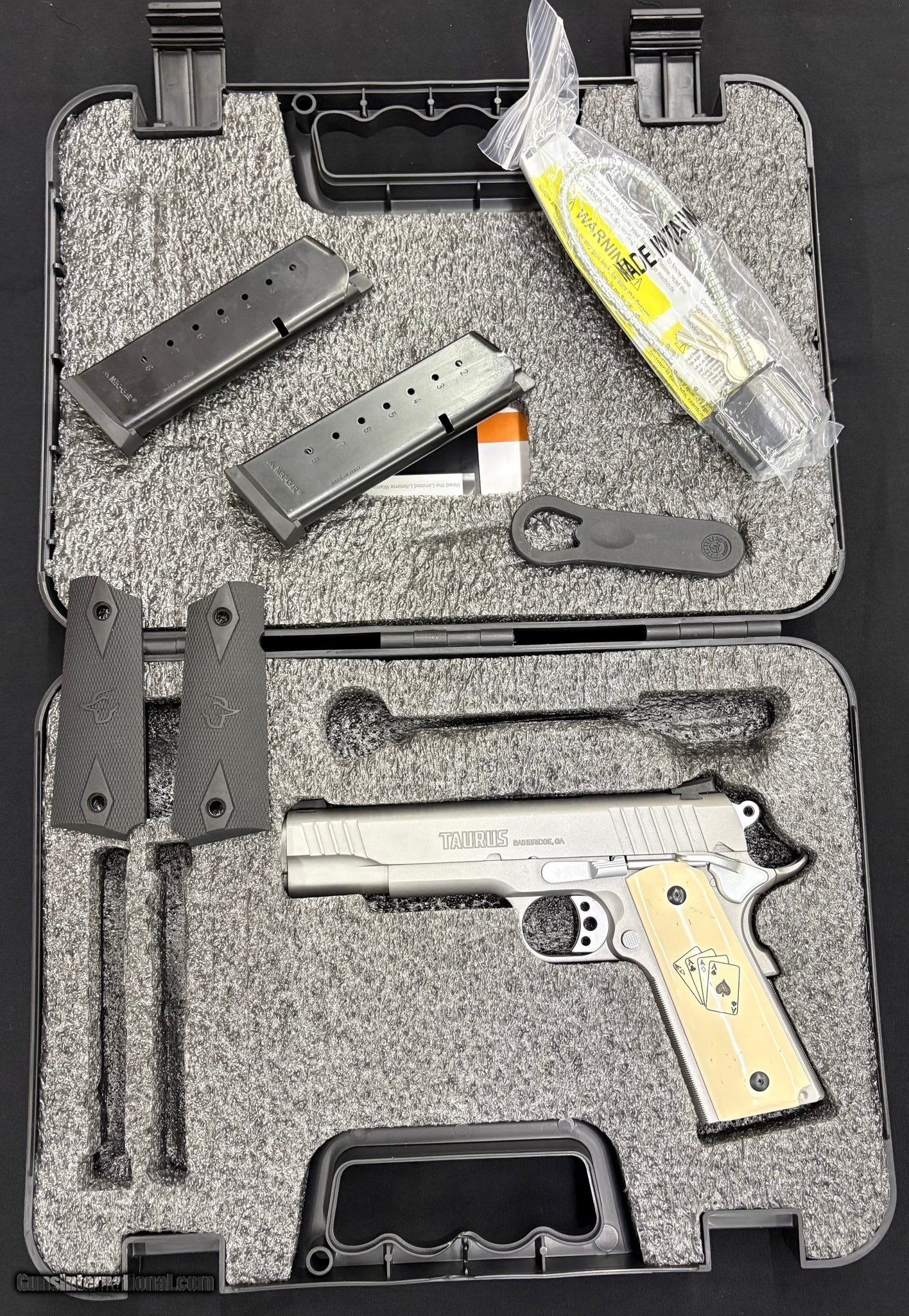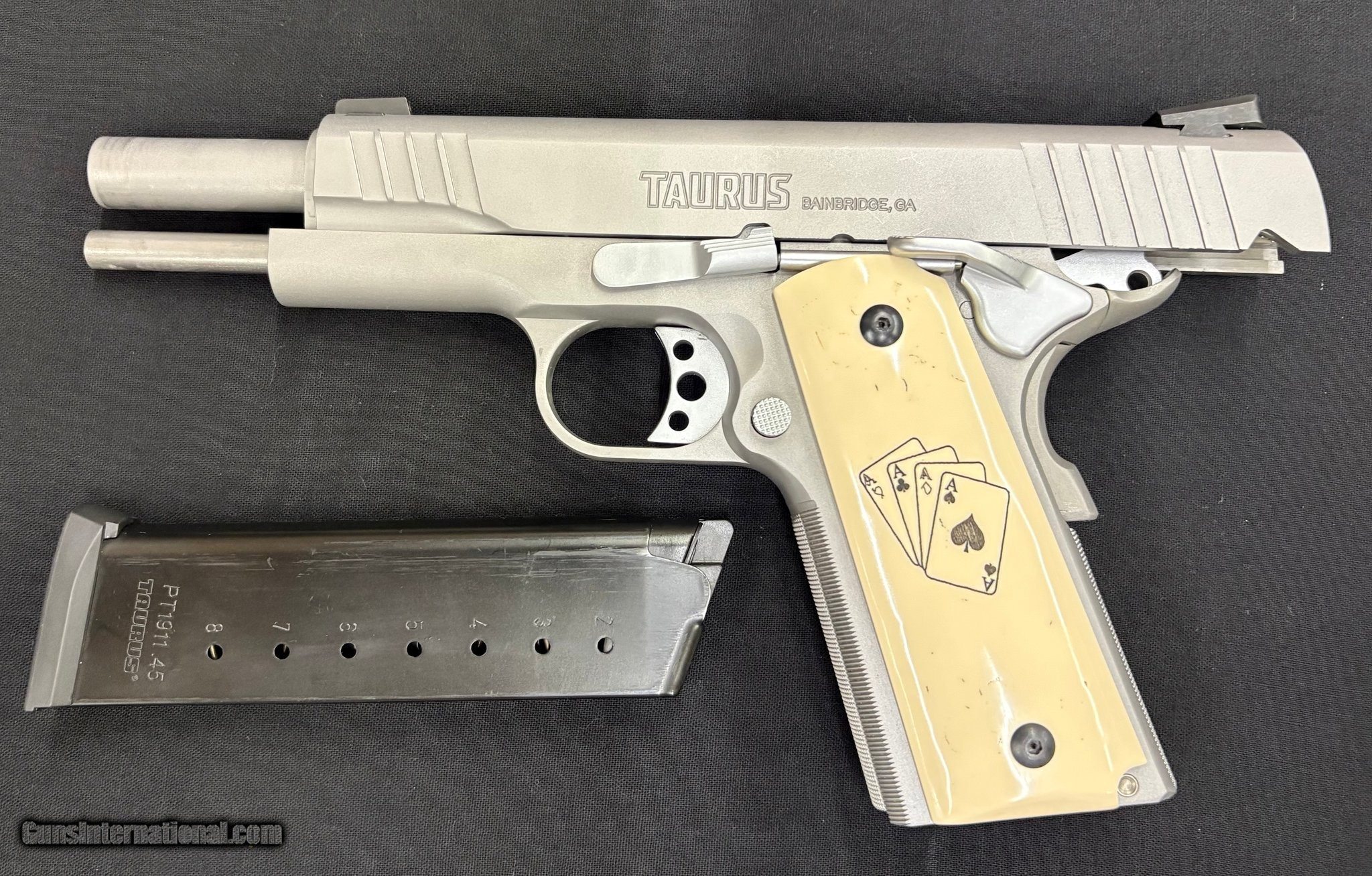 Description: Guns Listing ID: 584908 Taurus 1911 stainless steel wondering shape. SOLD Manufacturer: TAURUS Model: 1911 Caliber Info: .45 ACP Condition: Used - Non-Certified Barrels: 5" BARREL Action: SINGLE SHOT Finish: STAINLESS Weight: 2.4 LBS. |