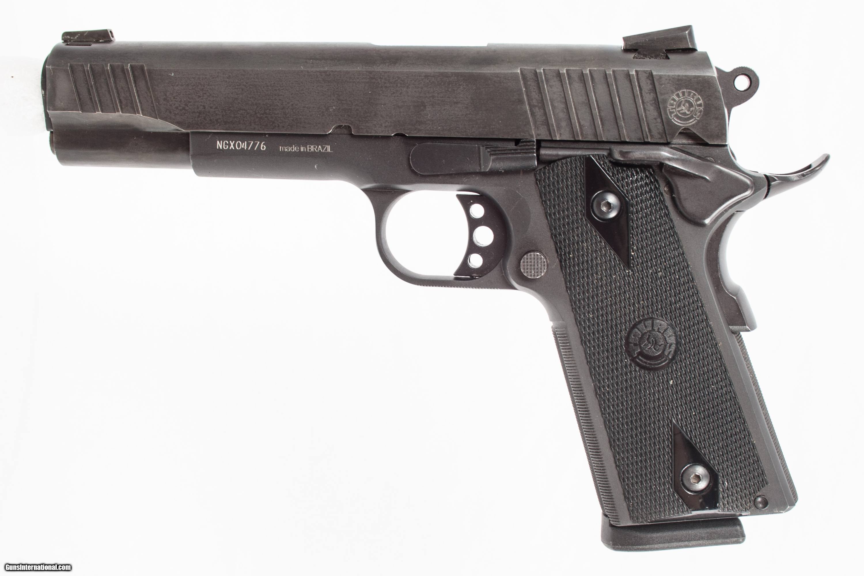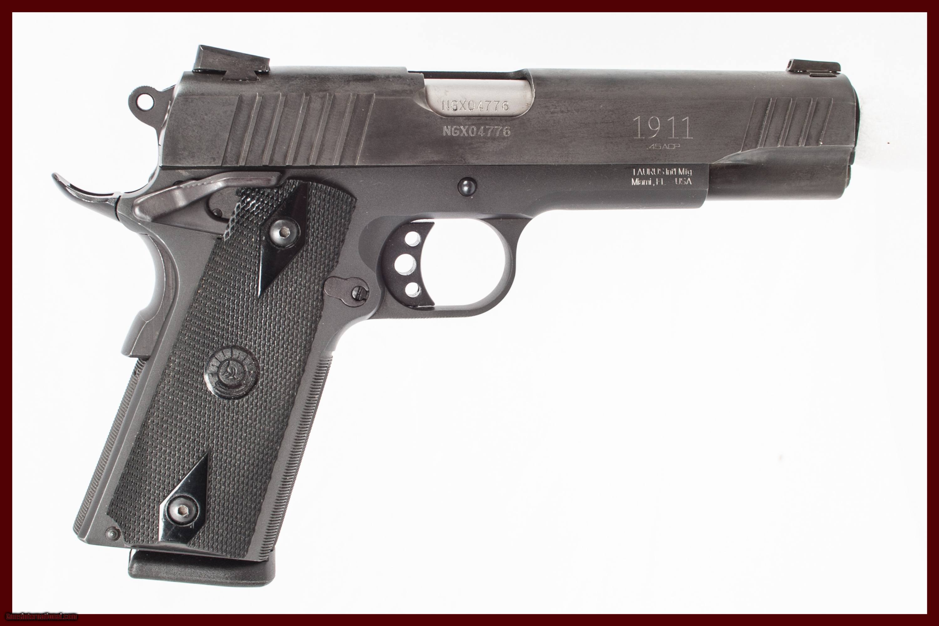 TAURUS 1911 CHAMBERED IN 45ACP WITH A 5 INCH BARREL COMES WITH CASE AND EXTRA MAG. THIS GUN IS IN EXCELLENT CONDITION AND IS COVERED BY DURY'S LIFETIME WARRANTY.