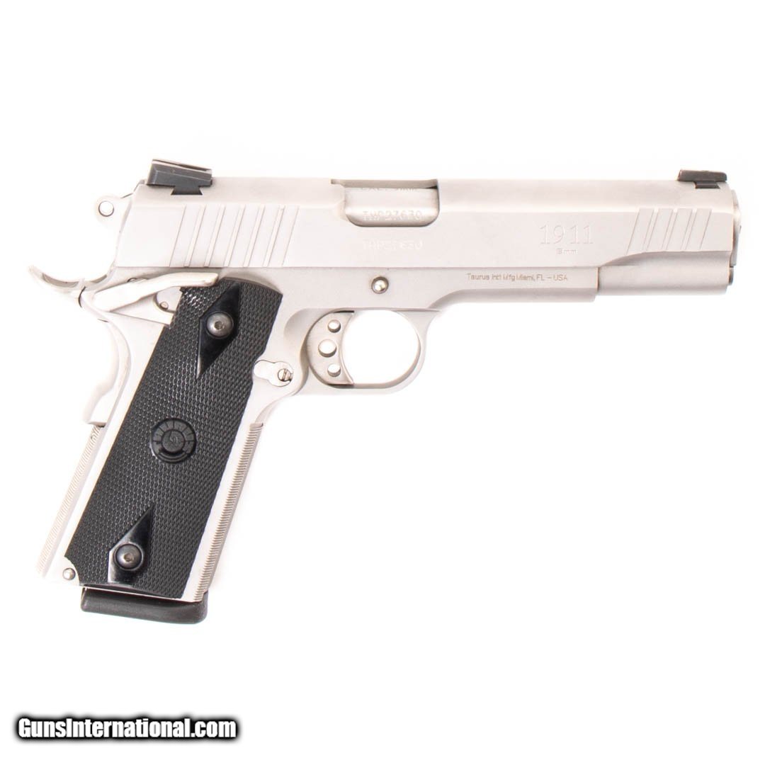 Description: Guns Listing ID: 508587 This Taurus 1911 features an ambidextrous thumb safety. Purchase includes the original case, manual, and two 9-round magazines. Get the best bang for your buck when you get a Certified Used Firearm . When you see the Certified Used stamp on any of our firearms, you can be confident that you‚‚re getting exactly what you want – a gun only in very good to excellent condition and held to the highest quality standard. All Certified Used Guns come with a ‚‚no questions asked‚‚ return policy . PLUS, ALL CERTIFIED USED GUNS SHIP FR SOLD Manufacturer: TAURUS Model: 1911 Caliber Info: 9MM LUGER (9x19 PARA) Condition: Used - Certified Barrels: 5.00 Action: SEMI AUTOMATIC Finish: stainless Weight: 2.4 |