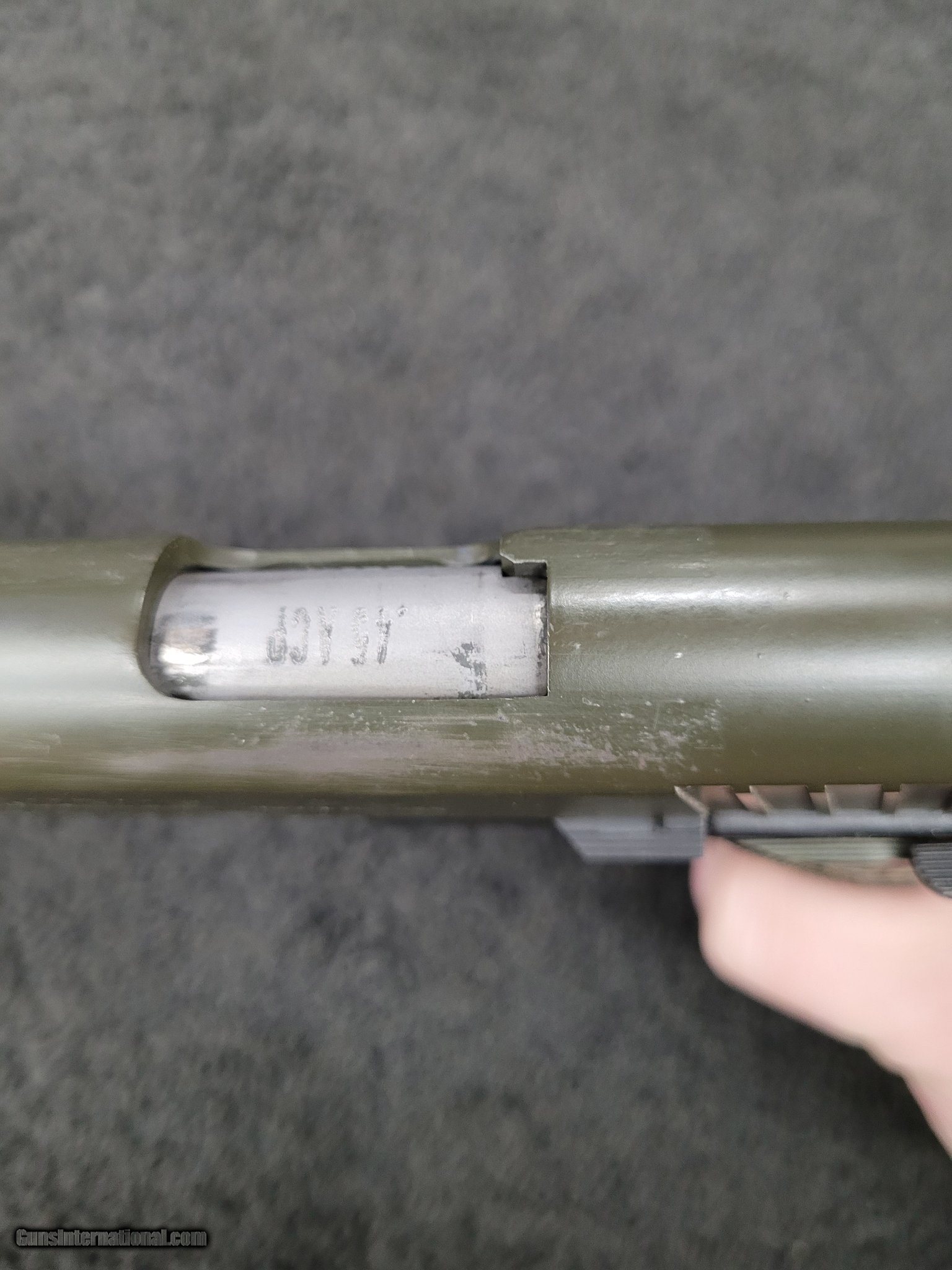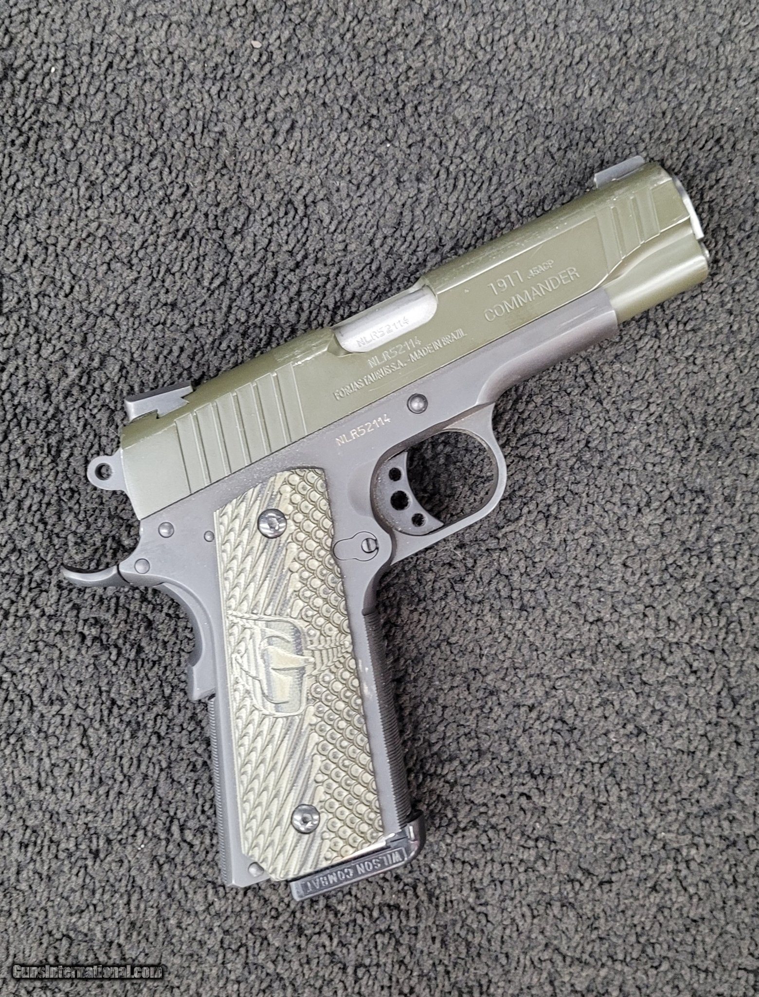 Description: Guns Listing ID: 497767 Taurus 1911 commander . 45acp one magazine holster ware cleaned and serviced SOLD Manufacturer: TAURUS Model: 1911 COMMANDER Caliber Info: .45 ACP Condition: Used - Non-Certified Barrels: 5 BARREL Action: SEMI AUTOMATIC Finish: GREEN WITH BLACK WEBBING |